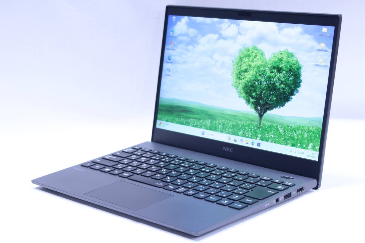 【メーカー】NEC ノートパソコン 【型番/品名】VersaPro UltraLite Type-VG VKV18/G-9 i7 PC-VKV18GZG9 【CPU】Core i7-10510U 1.80GHz / 4コア8スレッド / ターボ・ブースト2.0最大4.90GHz 【メモリ】16GB 【ストレージ】NVMe SSD 256GB 【ディスプレイ】13.3インチ FHD 解像度 1920x1080 ※カテゴリ--13.0~13.9インチ 【グラフィック】Intel(R)内蔵グラフィックス 【光学ドライブ】-- 【Webカメラ】搭載 【製造年月日】2021年06月 【無線LAN】Wi-Fi 6(IEEE802.11ax)対応 【その他装備】Bluetooth (※その他インターフェースは画像とメーカーページ等でご確認ください。) 【OS】Windows11Pro-64bit 【Officeソフト】アプリ無し(Microsoft Web版Officeご利用可) 【ウイルス対策】Windows Defender、Windowsファイアウォール 【寸法/質量】幅:307.2mm/奥行き:206.0mm/高さ:16.7mm/重量:約814~868g(仕様・構成により変動する場合あり) 【付属品】ACアダプタ 【メーカーページ】(スペック完全一致でない場合あり) https://support.nec-lavie.jp/navigate/support/productsearch/bizpc/202102/VKV18G9/spec.html 【取扱説明書】(機種・型番完全一致でない場合あり)。 https://support.nec-lavie.jp/e-manual/m/nx/vp/base/202102/vk_vg.html