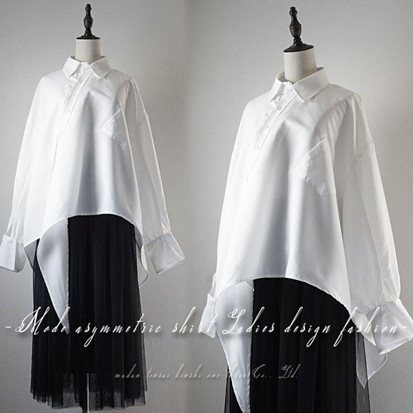 アシンメトリーなデザインの個性的モード系長袖シャツ
