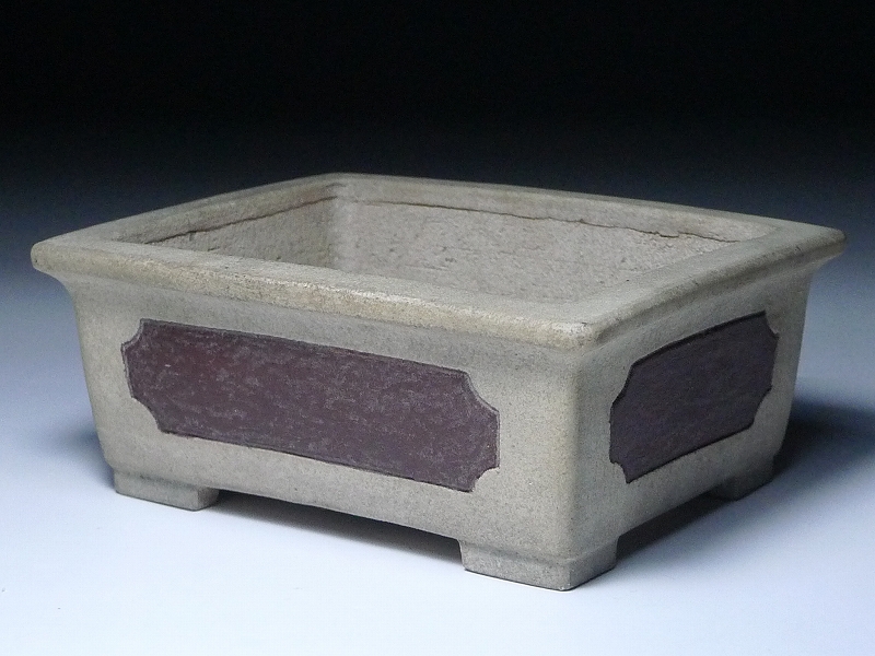 盆栽鉢 烏泥外縁切足長方鉢 中浅 小型 陶器 小品盆栽 ミニ盆栽 盆器 和鉢 園芸道具