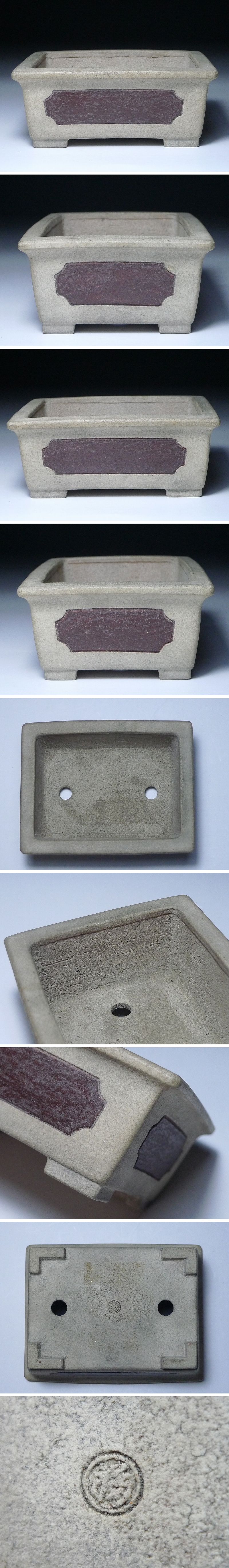 6028K06*8B▲盆栽鉢 烏泥外縁切足長方鉢 中浅 小型 陶器 小品盆栽 ミニ盆栽 盆器 和鉢 園芸道具