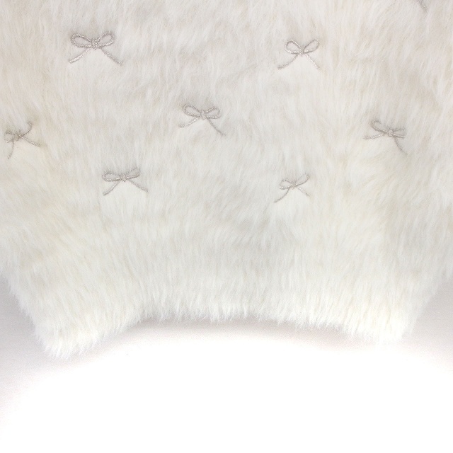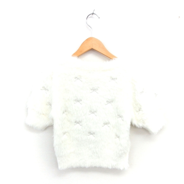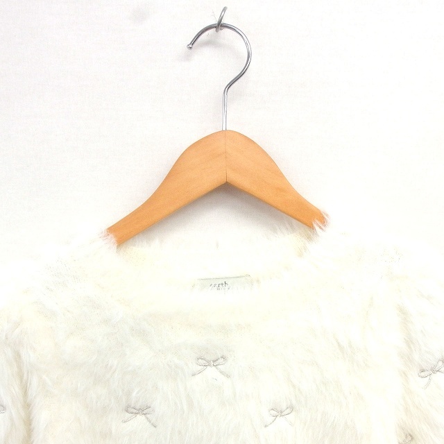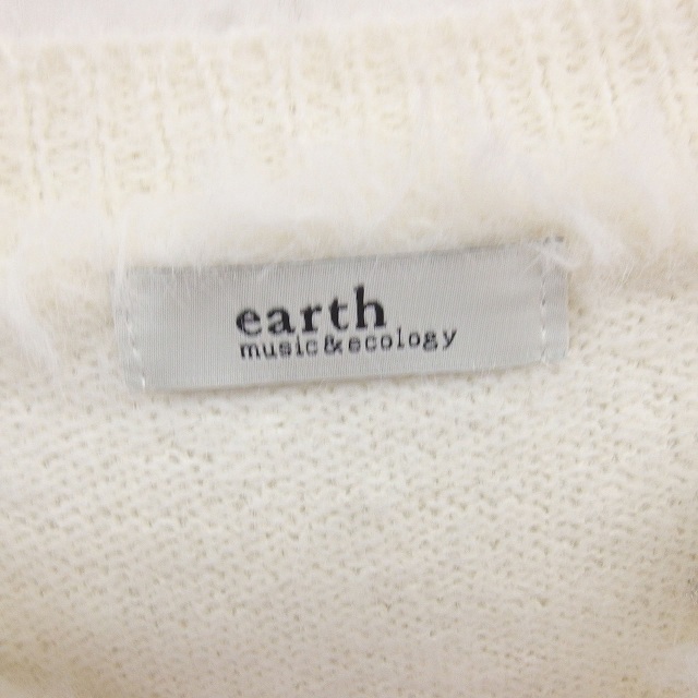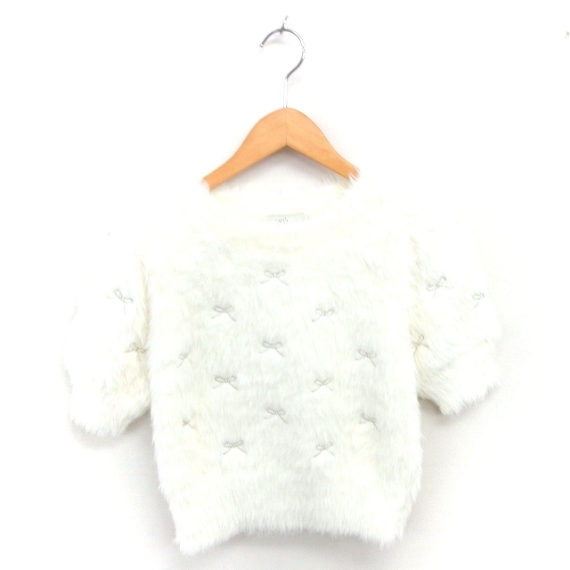 アースミュージック&エコロジー EARTH MUSIC & ECOLOGY ニット シャギー セーター モックネック リボン柄 刺繍 半袖 F アイボリー /TT3 レディース