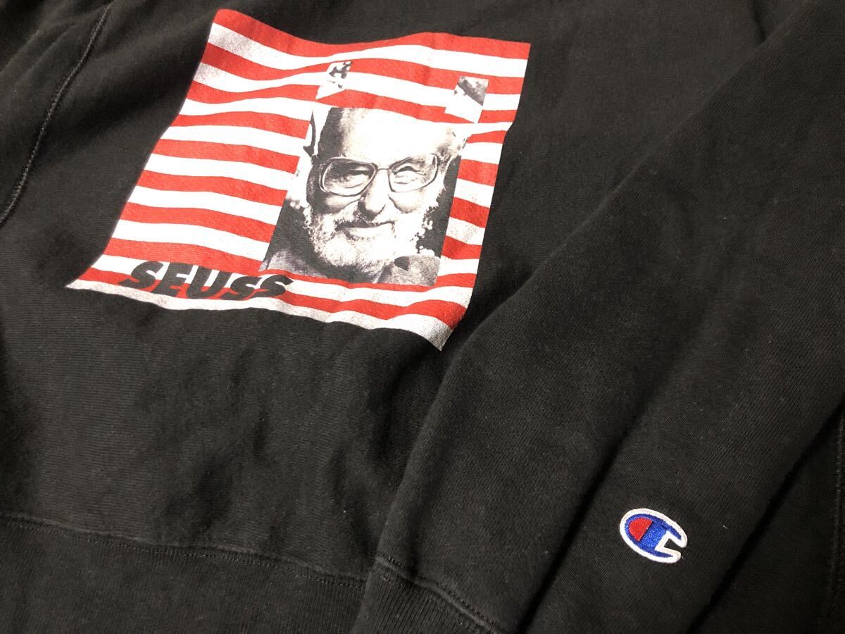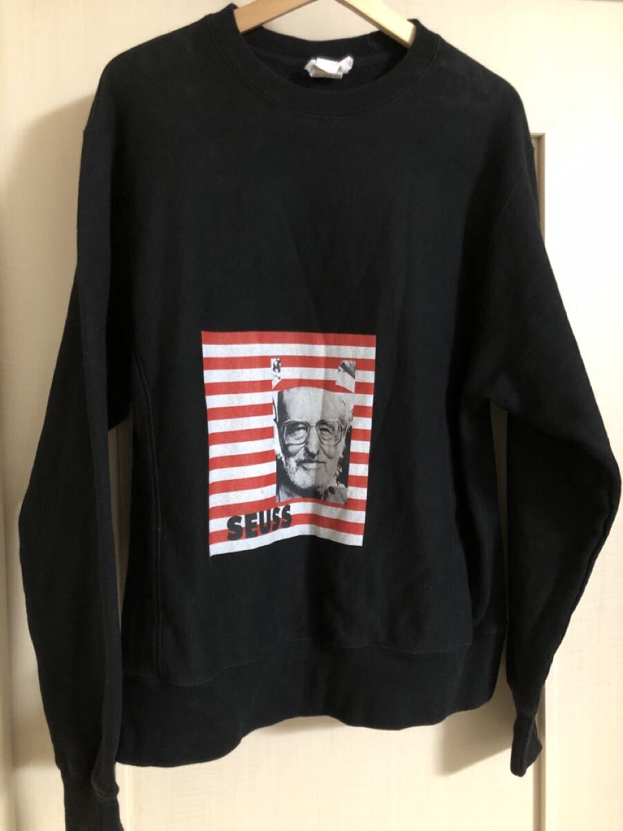 フロントにセウスのプリントが施されたブラックスウェット。