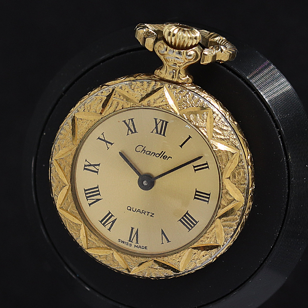 1円 稼働 chandler QZ ゴールド文字盤 懐中時計 ペンダントウォッチ 腕時計 2236000 8BJY MST