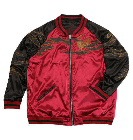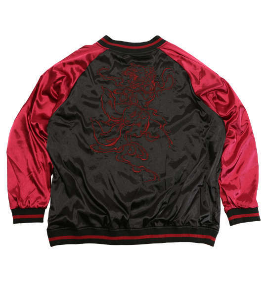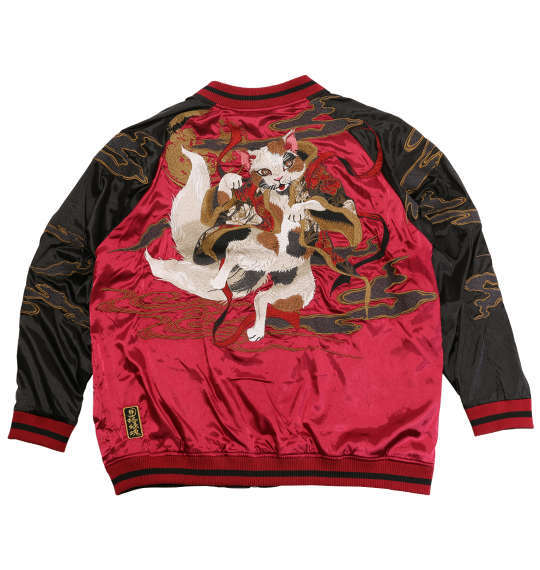 ☆6L(ウエスト約135~145㎝対応)/絡繰カラクリ/猫又柄リバーシブル・スカジャン/ワイン色