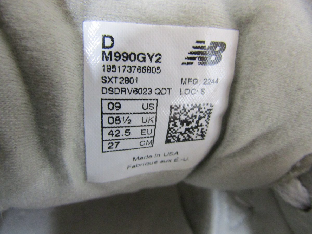 New Balance ニューバランス M990GY2 MADE IN USA メンズスニーカー グレー 27.0cm 付属品なし 中古品 ◆130860 | |||||||||