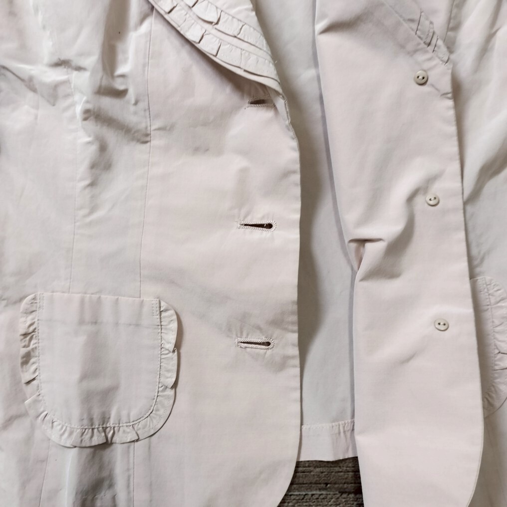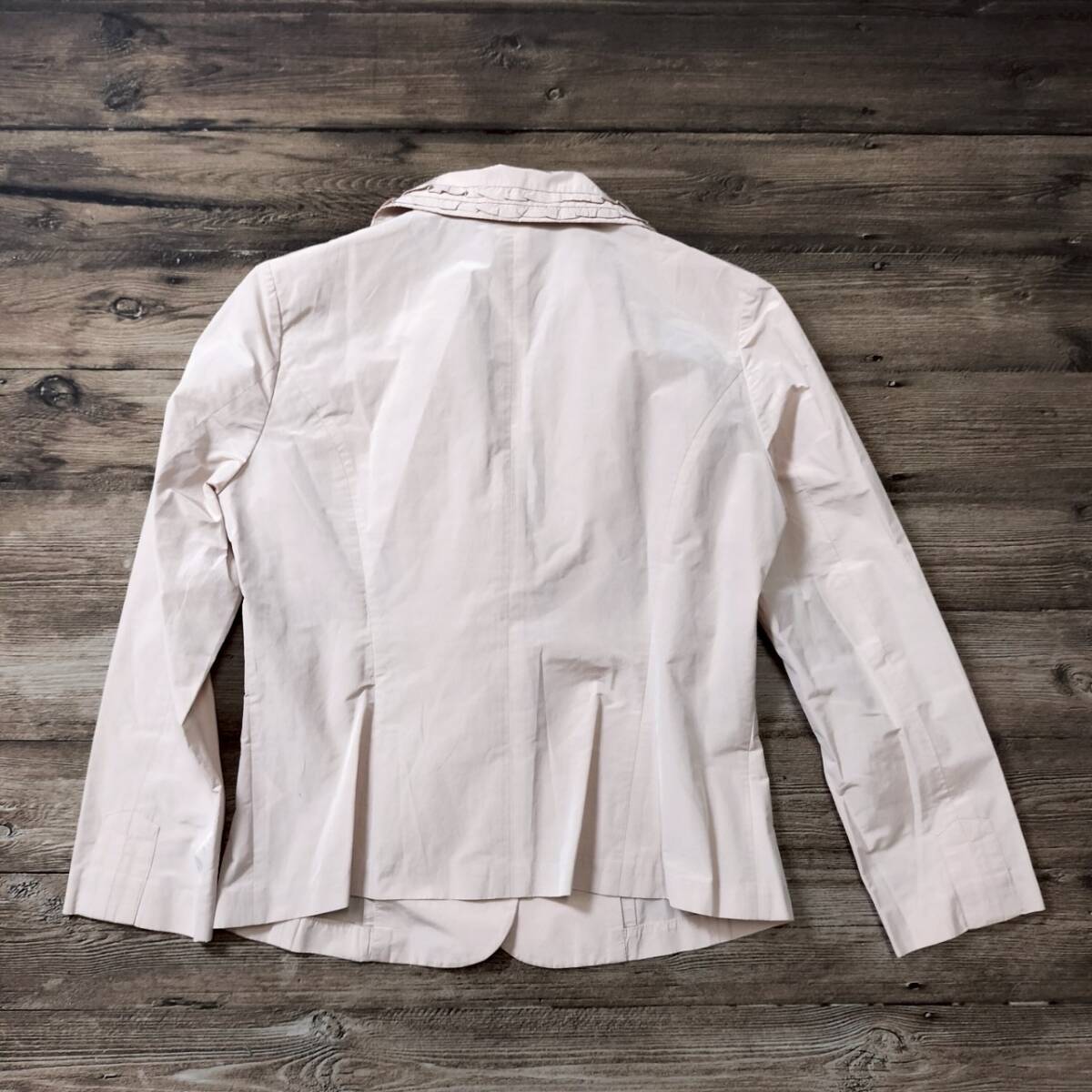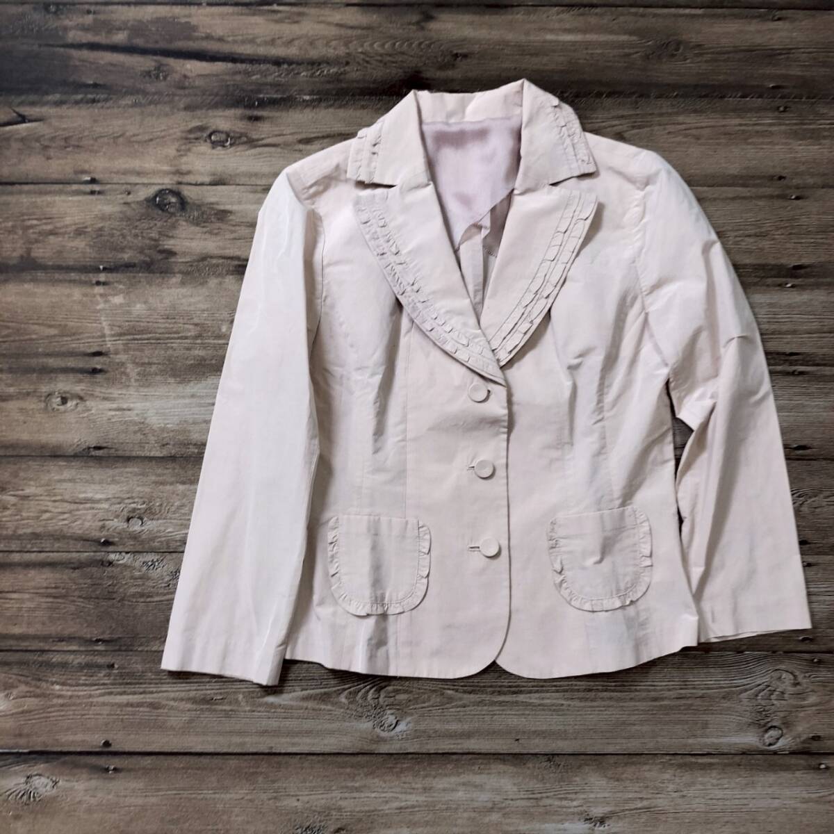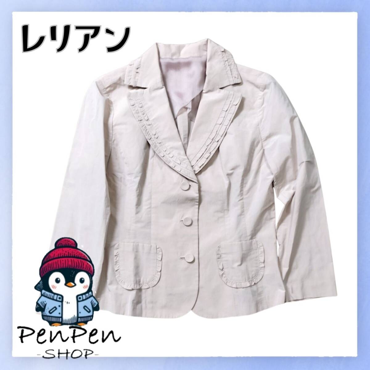 高級感漂う Leilian レリアン レディース ジャケット フリル襟 テーラード スモーキーピンク コットン混 Mサイズ 9号 オフィスカジュアル