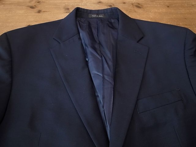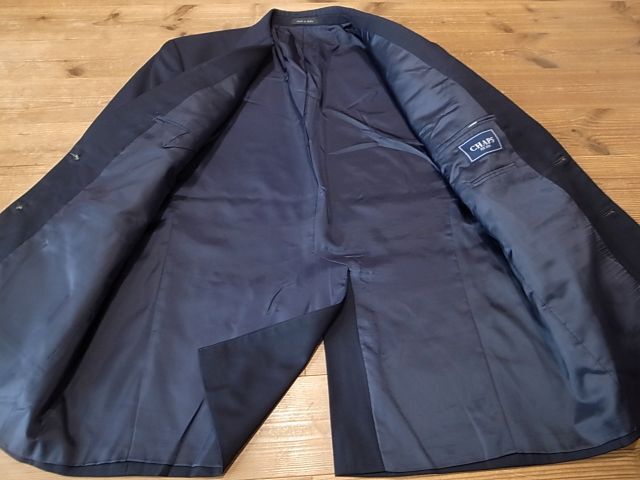 ◆ブランド 「CHAPS」ラルフローレン派生ブランド アメリカ古着 ●サイズ表記 42R 実寸サイズ XL相当 肩幅…50cm(肩先から肩先の間の長さ) 身幅…58cm(両脇を横直線に結んだ長さ) 着丈…79cm(後衿ぐり中央から後身頃裾) 袖丈…61cm(袖付けの肩先から袖先) ※平置き状態での素人採寸ですので、多少の誤差はご了承ください。 ●素材…100%WOOL オールシーズン対応 ●色…紺 ●ポケット… フラップポケット ●裏地…総裏仕立て ●ベント…センターベント ●製造国表記…INDIA ●状態…多少の使用感はございますが状態良好です。 ★送料 全国一律 700円 佐川急便 (北海道900円 沖縄その他離島1700円) ※複数ご購入の場合、同梱発送可能です。 |