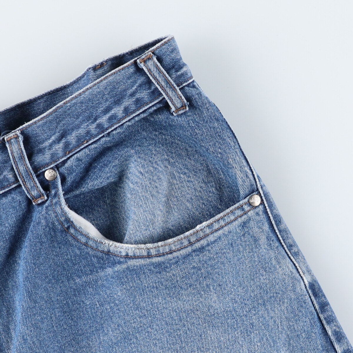 | 着用感: メンズw37 表記サイズ: W36 L30 ウエスト: 96cm 股上: 31.5cm 股下: 71.5cm もも周り: 76cm 裾周り: 50cm ![]() | ![]() ランク:C USEDデニムですので使用感、擦れ、色落ちなどございますが、まだまだご愛用していただけます。 古着という事をご理解の上ご注文よろしくお願いします。 【状態追記】 ●前、両ポケット口・左膝に擦れ 両ポケット口内側に汚れ ●後、パッチ?離 ●裾上げされております。 |