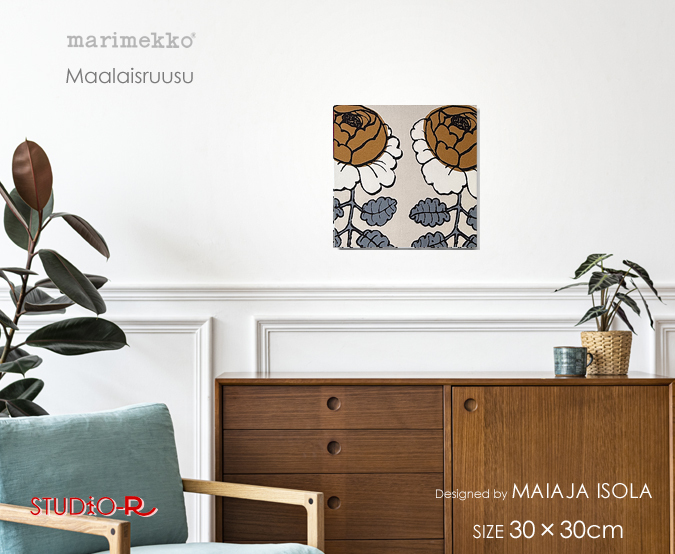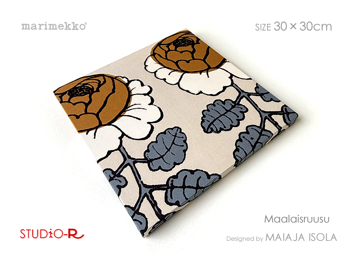 日本未発売 マリメッコ Marimekko ファブリック パネル ボード マーライスルース Maalaisruusu 30×30cm グレー×ブラウン×ホワイト
