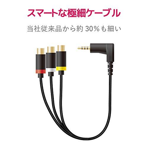L型-4極・ブラック DH-MLWRYF015BK・・Style:L型-4極・ビデオ/DVDデッキ等に接続されているお手持ちの映像RCAピンプラグ×3ケーブルに接続することで、AV入力用ミニジャック(4極)を搭載したテレビ等に接続して映像と音声を出力できるアナログビデオ変換ケーブルです。・※4極ミニプラグの配線仕様(ピン配列)は統一されておらずメーカー・機種によって異なる場合があります。事前に接続される機器の配線仕様(ピン配列)をご確認ください。・ミニジャック(4極)端子を搭載したシャープ製テレビ、ソニー製テレビ等に使用可能です。 その他対応モデルは製品WEBページにてご確認ください。・RCAコネクタは約25%小型化し、ケーブルは約30%細くなり、よりコンパクトで取り回しがしやすいケーブルです。※当社従来品比・テレビ等との接続側には狭い場所での接続にも使いやすいL型プラグを採用しています。【 仕様 】 ■ コネクタ形状:L型ミニプラグ(4極) - 映像RCAピンジャック×3メス ※ミニプラグピン配置は、先端から:音声左(白)、映像(黄)、アース、音声右(赤) ■ 対応機種:AV入力用ミニジャック(4極)を搭載したテレビ等と映像RCAピンプラグx3(オス)ケーブルとの接続 ■ ケーブル長:0.15m ■ カラー:ブラック ■ 環境配慮事項:EU RoHS指令準拠(10物質) 【 説明 】 ■ ビデオ/DVDデッキ等に接続されているお手持ちの映像RCAピンプラグ×3ケーブルに接続することで、AV入力用ミニジャック(4極)を搭載したテレビ等に接続して映像と音声を出力できるアナログビデオ変換ケーブルです。 ※ 4極ミニプラグの配線仕様(ピン配列)は統一されておらずメーカー・機種によって異なる場合があります。事前に接続される機器の配線仕様(ピン配列)をご確認ください。 ■ ミニジャック(4極)端子を搭載したシャープ製テレビ、ソニー製テレビ等に使用可能です。 その他対応モデルは製品WEBページにてご確認ください。 ■ RCAコネクタは約25%小型化し、ケーブルは約30%細くなり、よりコンパクトで取り回しがしやすいケーブルです。※当社従来品比 ■ テレビ等との接続側には狭い場所での接続にも使いやすいL型プラグを採用しています。 ■ 外部ノイズに強い75Ω同軸ケーブルを使用しています。 ■ 高純度OFC99.99%(無酸素銅)ケーブルを使用し、信号の歪みや伝送ロスを抑えます。 ■ サビに強く経年劣化信号劣化を防止する金メッキ端子(24K)を採用しています。