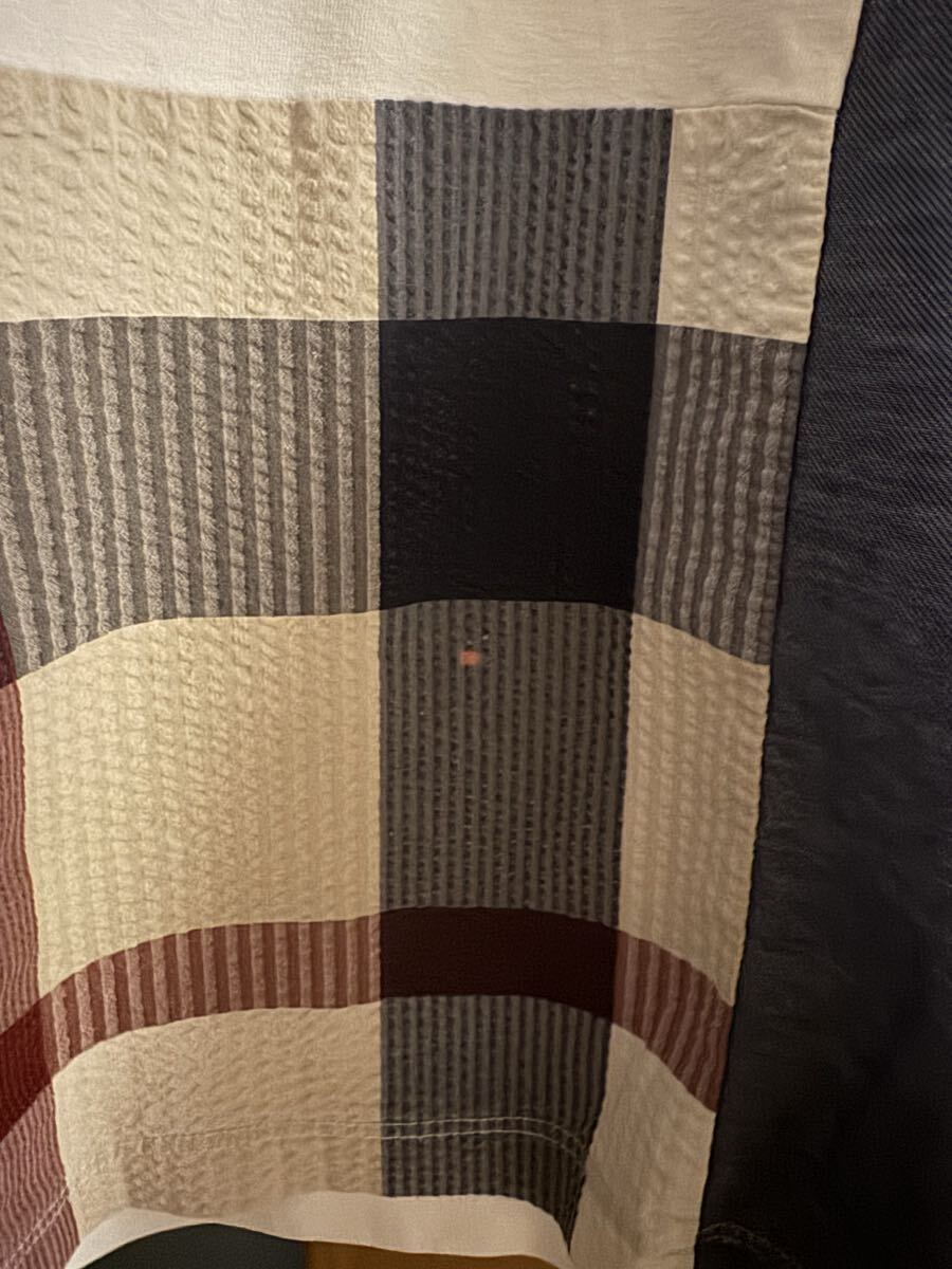 ・フロントをクレストブリッジチェック柄で切り替えたTシャツで、異なる素材感の生地を組み合わせてパッチワーク状に切り替える事で存在感あるデザインに仕上げています。袖・後身頃の素材には麻混の糸を使用し麻特有の清涼感に加え、ストレッチ性のあるポリエステル糸を交編する事で着心地も追及しています。フロントのチェック部分にはタテ畝と凹凸感が特徴のサッカー生地を使用しており、軽やかで清涼感ある風合いになっています。