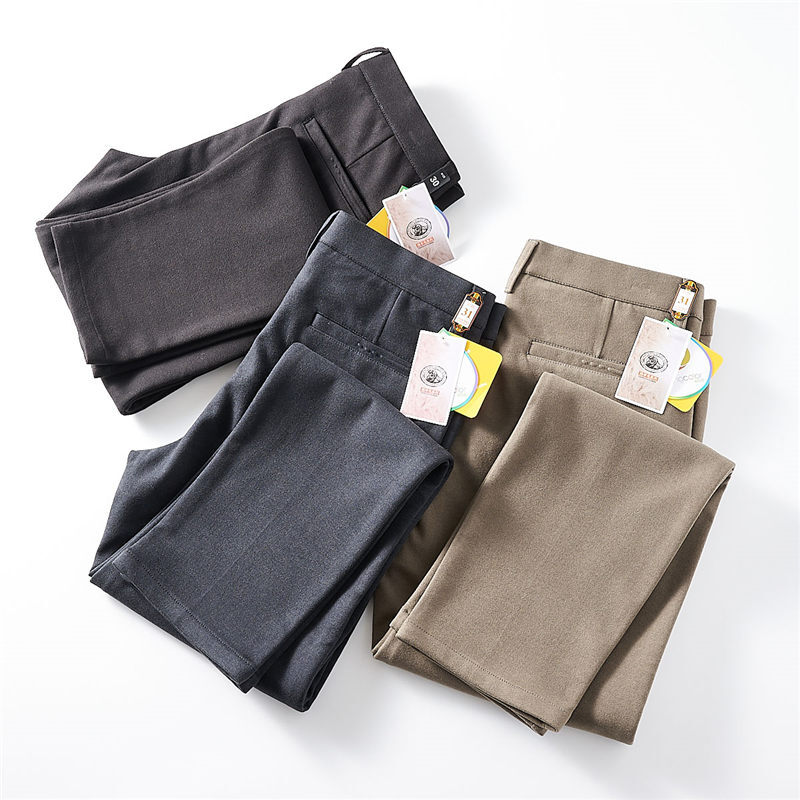 Y6382-XL グレー 新品 ウール混 テンセル混 ストレートパンツ 秋冬 防寒 厚手 ノーアイロン ストレッチ メンズ ビジネス カジュアル