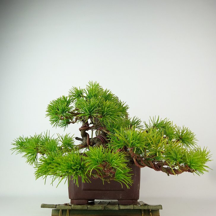 ■植物ですので撮影時期や季節によって剪定などの手入れにより写真から変化がございます。撮影日をご確認のうえ、ご注文ください。 【五葉松盆栽】 日本固有のマツであり、平安時代から観賞用として神社仏閣などの庭園に植栽されています。銀色がかった葉が美しく成長が遅い上、木質が柔軟で枝を曲げやすいため、盆栽に使われることも多い。樹皮は暗灰色で、老木になると裂片がうろこ状に剥がれ落ちます。 |