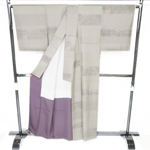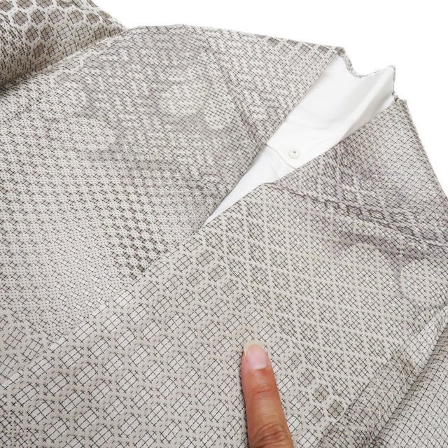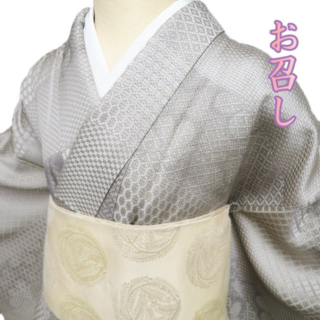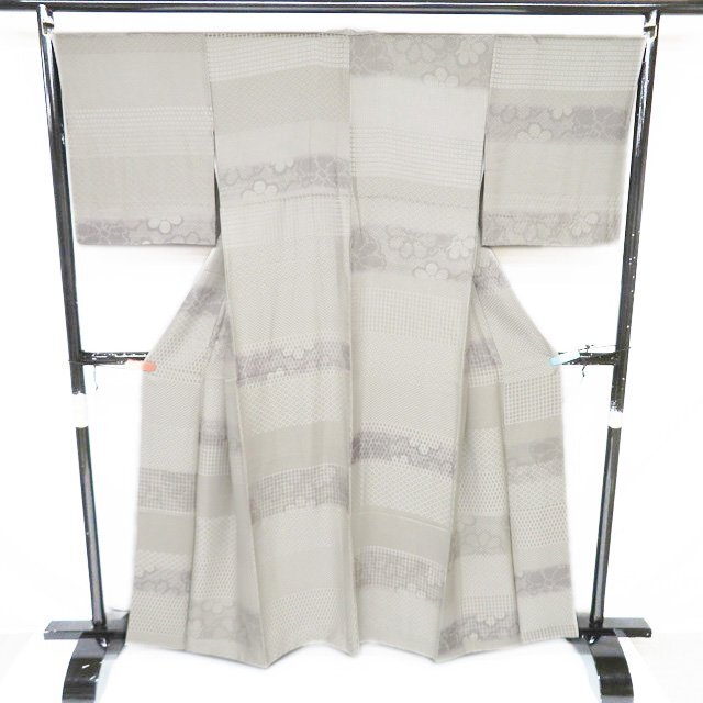 丈160cm(+29) 裄68.5cm(+2.5) 袖丈49cm(+8) 前幅25cm 後幅31cm ※サイズのお直し、承ります。 (身丈のみ、身幅のみのお直しは承っておりません) ※身丈は肩から測っております。 ※()内は※()内の数字はお直しで直せる長さを示しています。お仕立て直しの場合は胴裏を付け替えるため、さらに長く直せる場合があります。詳しくはお問い合わせください。 単位:cm 素材 正絹 商品ランク B ●着用時期 10月~5月(+-2週間) ●着用シーン 観劇、ご友人との食事、お買い物など ●お色 砂色 衿に薄っすらとシミがございますが、目立たず、ほぼ分からない程度でまだまだご着用いただけるお品物です。 写真に写っている着物のみの販売で、帯等の付属品はついておりません。 一部商品は実店舗・他サイトでも並行して販売しておりますので売り切れの際はご了承ください。 その他多数販売中 ku- | ||||||