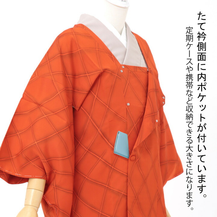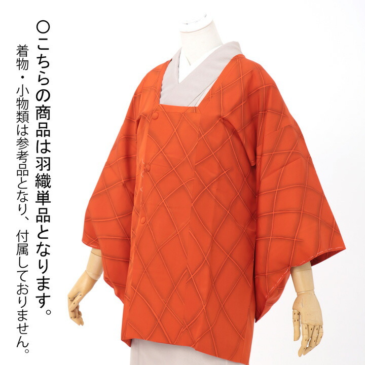 【中古品】道行コート「変わり格子 朱色」着物コート 和装コート【メール便不可】