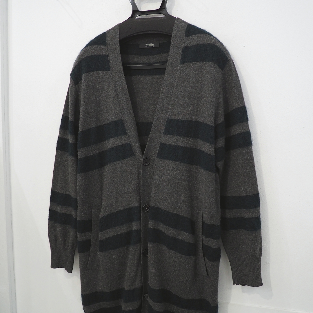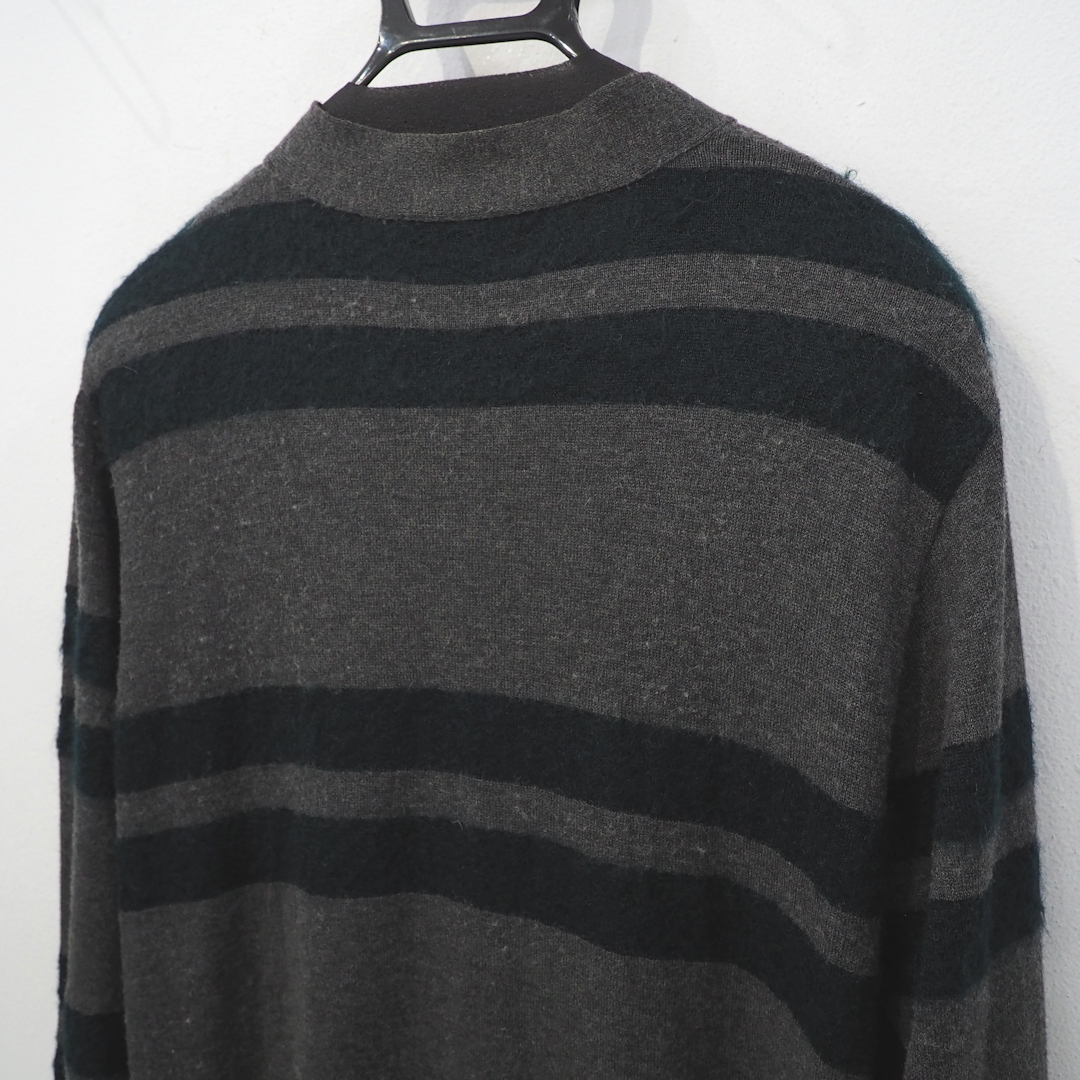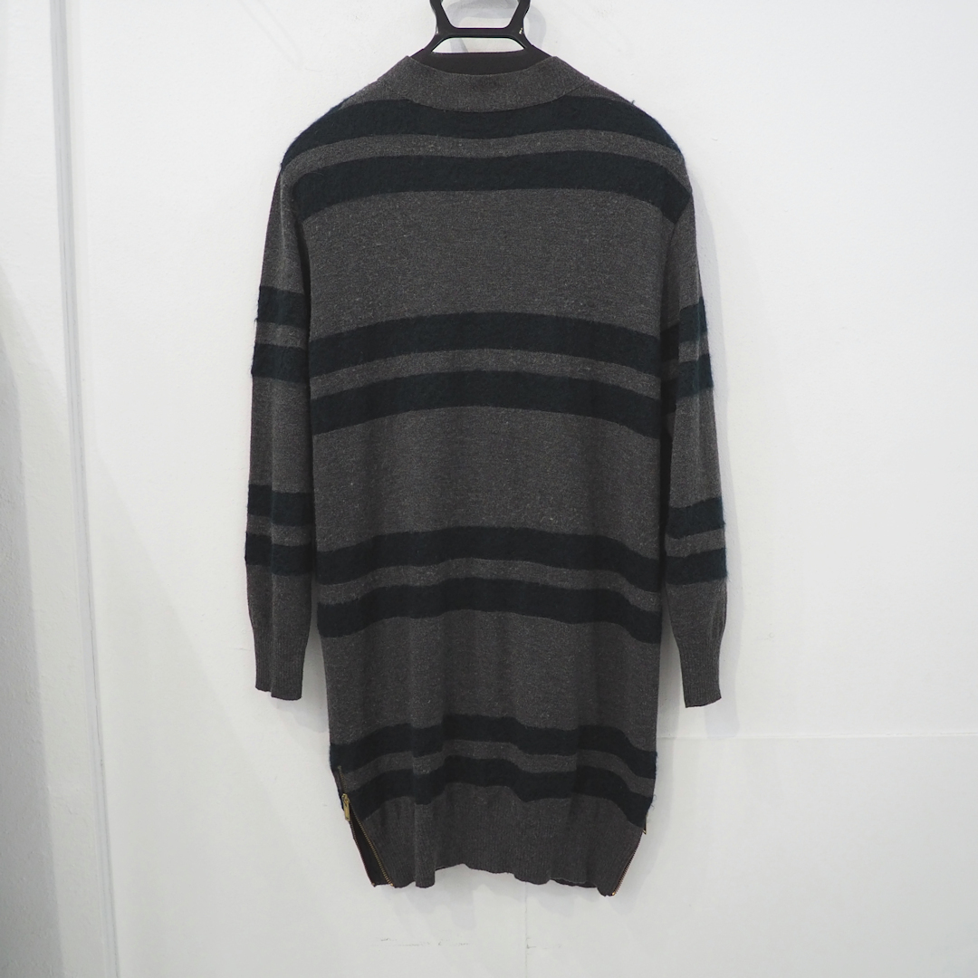 2014-2015awアイテムで、モヘア混の中厚ニットを使用し、Vネック長袖型、ロング丈、ボーダー編み、両サイドジップ、2ポケットなど、細部まで凝ったデザインです。