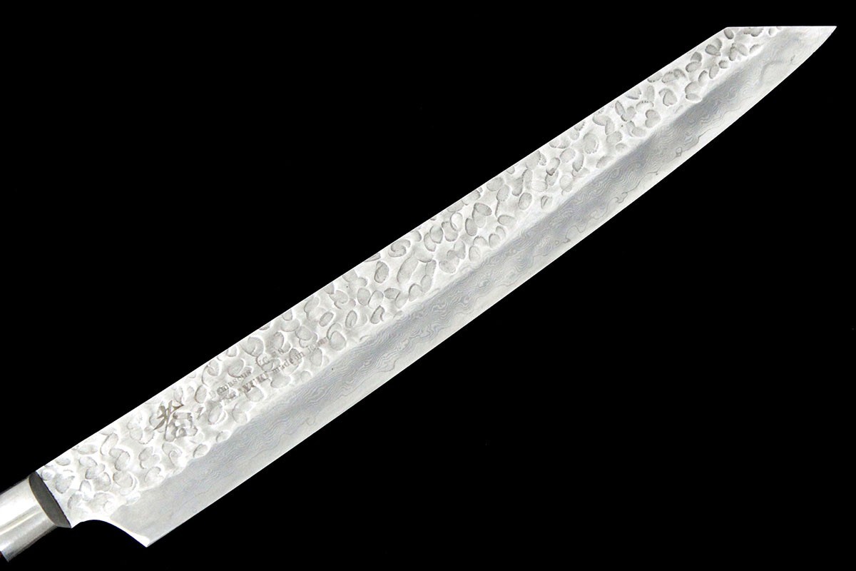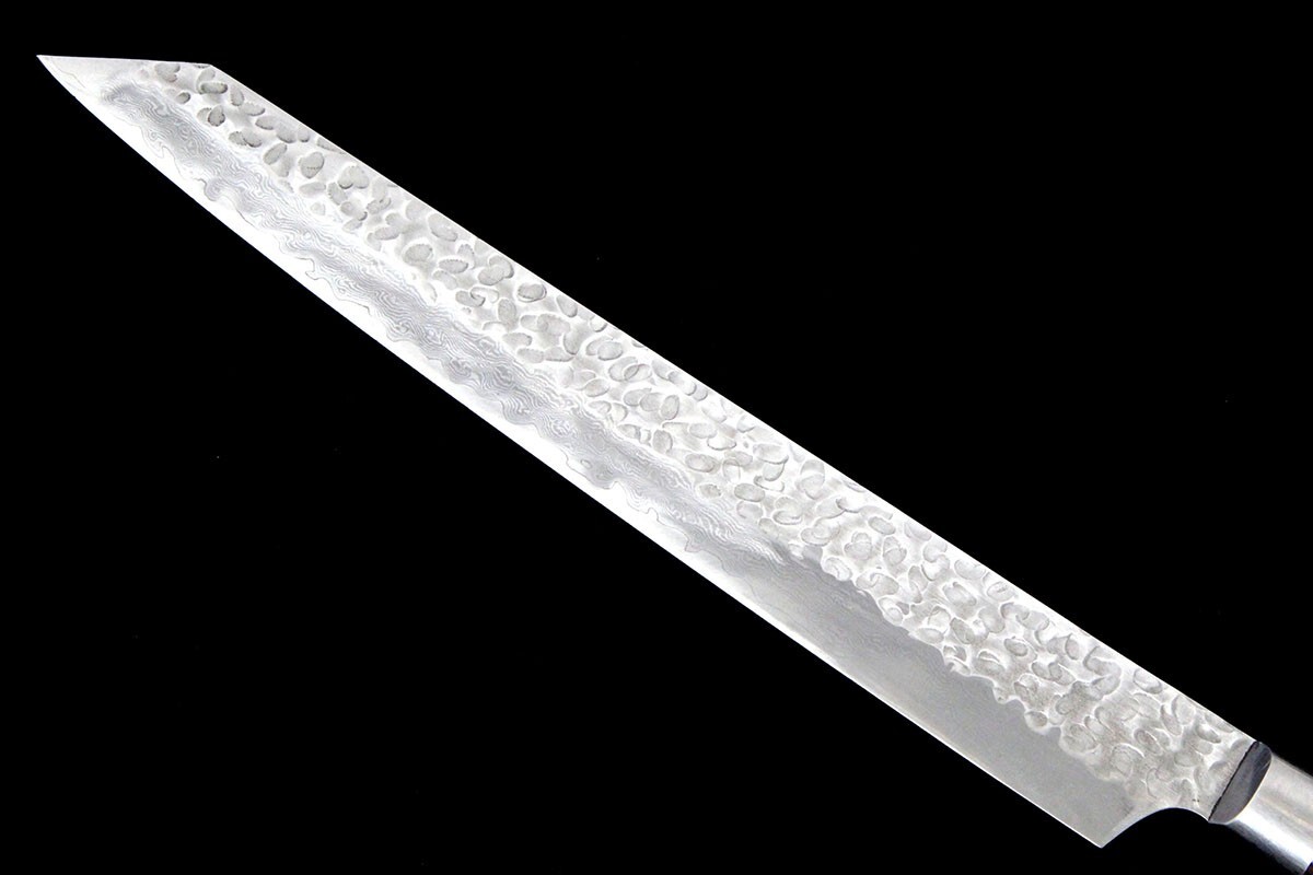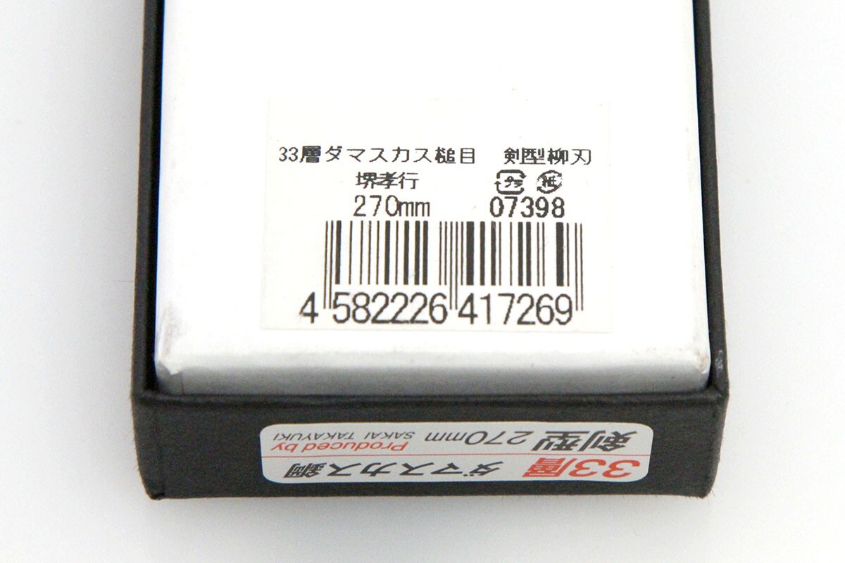 堺孝行 剣型筋引包丁 250mm 33層 VG10 ダマスカス鋼 鍔付き柄 箱付