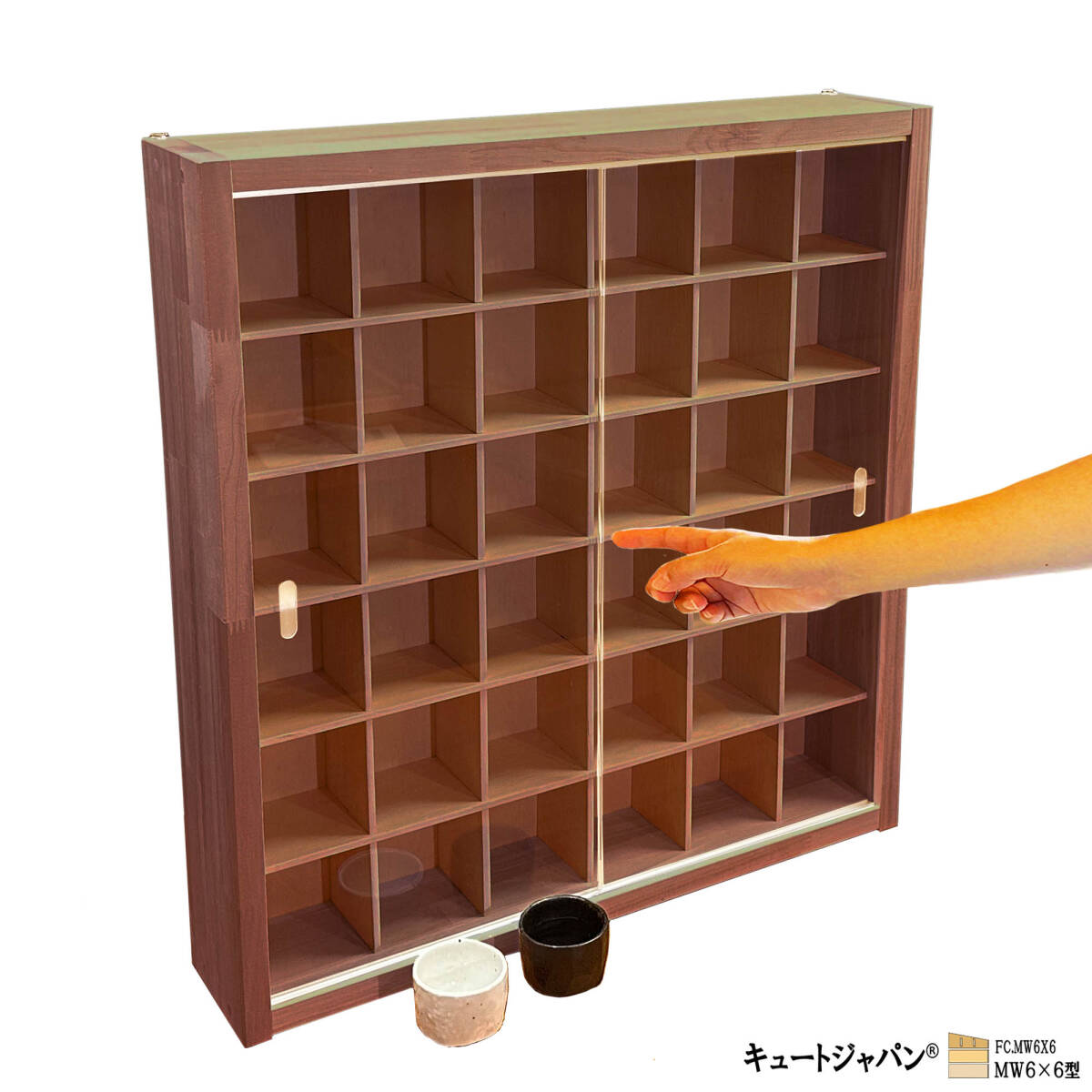 お猪口が36個収納可、コレクションを惹きたてるディスプレイケースです。