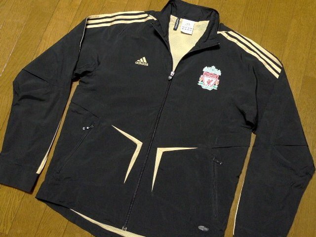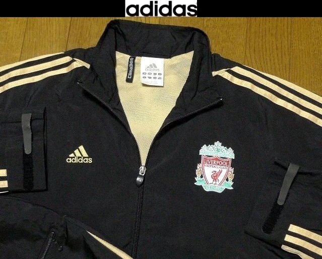 XL日本サイズ位★セール送無料★超希少アディダス3本ライン黒金BLACK&GOLD刺繍リバプールフットボールクラブLiverpool Footballジャケット