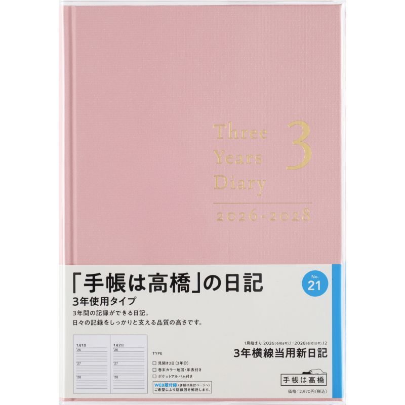 (まとめ買い)高橋書店 2026年 No.21 3年横線当用新日記 A5 ローズピンク 〔3冊セット〕