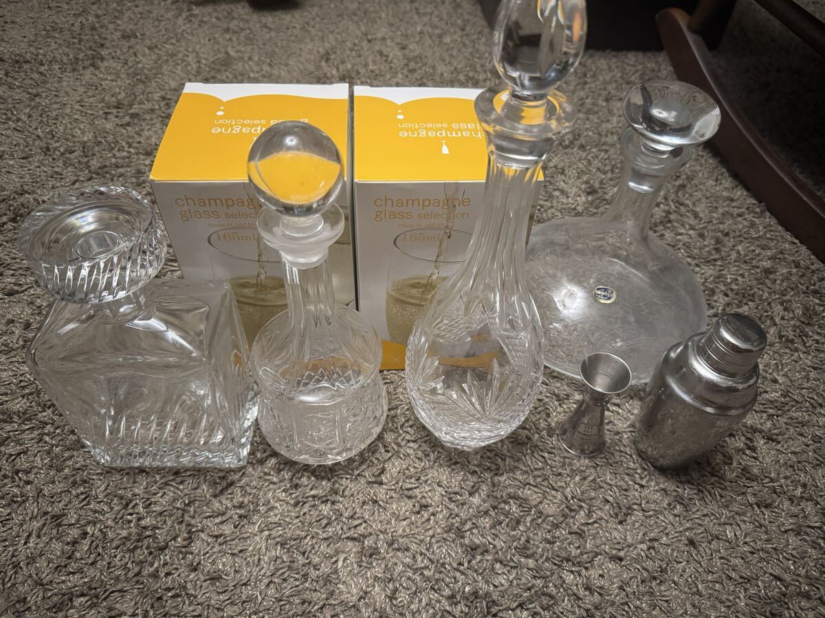 デキャンタやウイスキー、ワイングラス、カクテルシェイカーなど