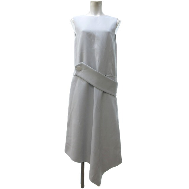 アドーア ADORE 美品 バイカラーボンディングアシメトリーヘムワンピース ベルト付き 白 ホワイト 紺 ネイビー 38 約M
