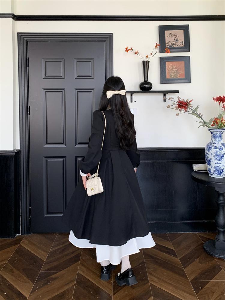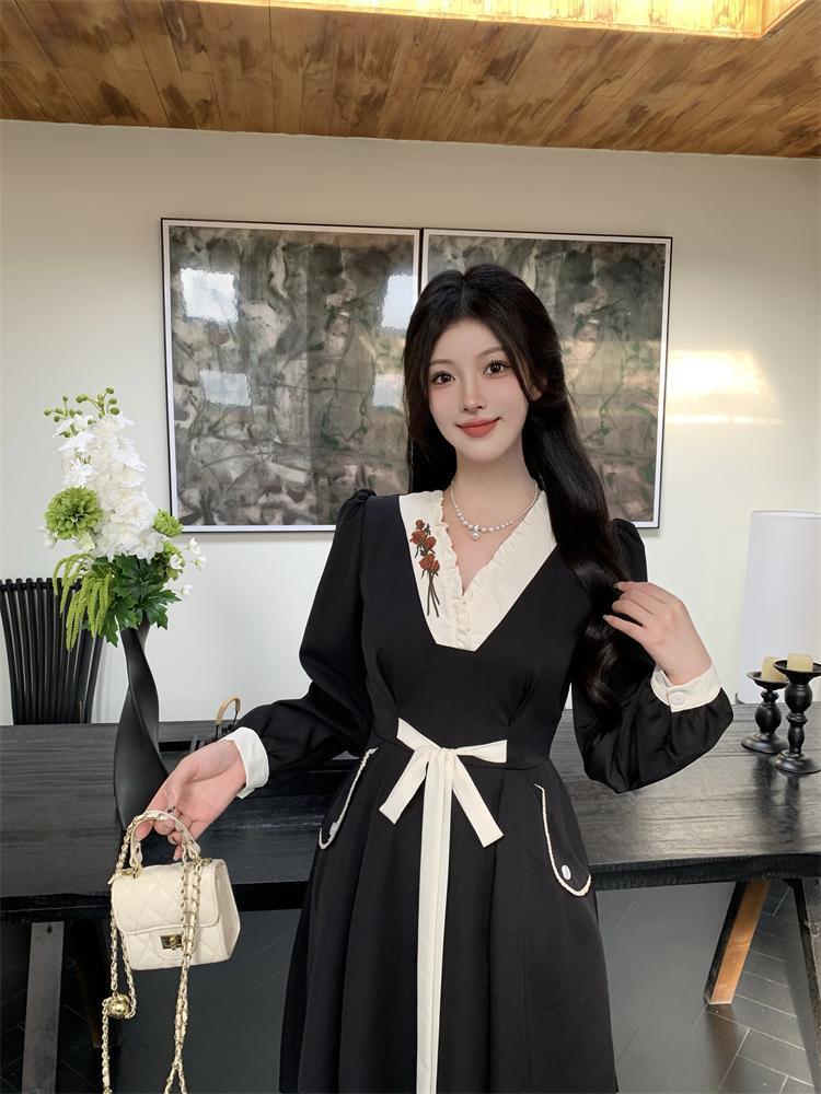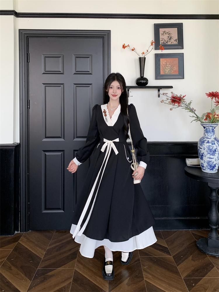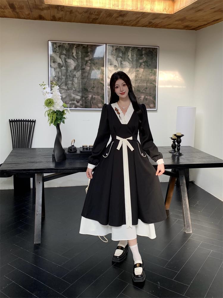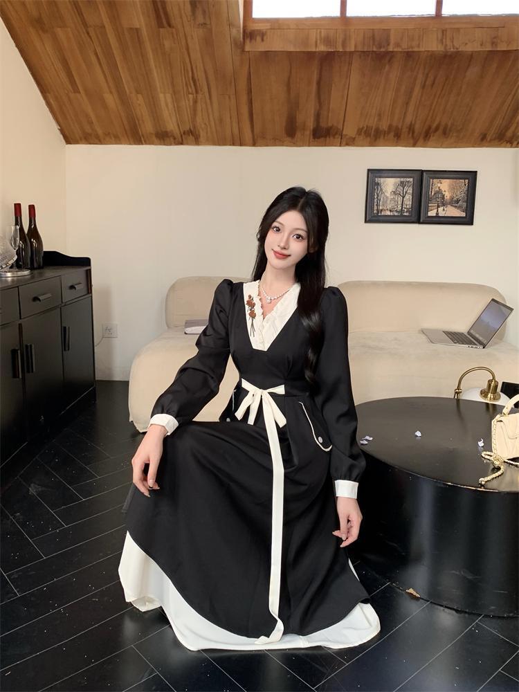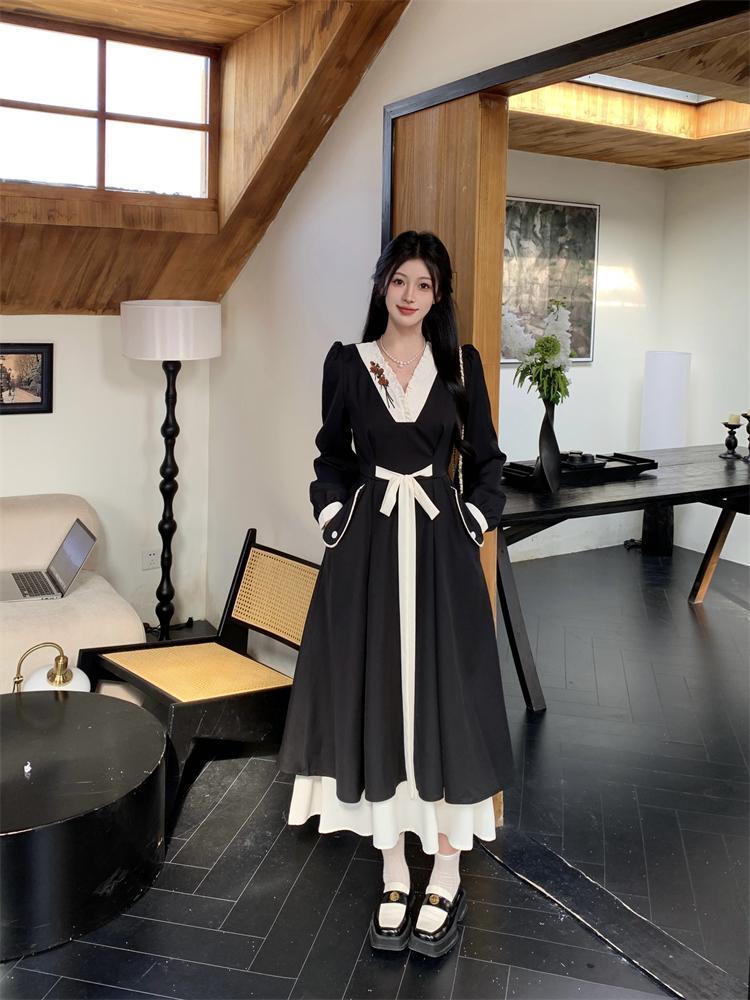 新作 大きいサイズ ヘップバーン風 Vネックワンピース 新品秋冬春ロングレディース