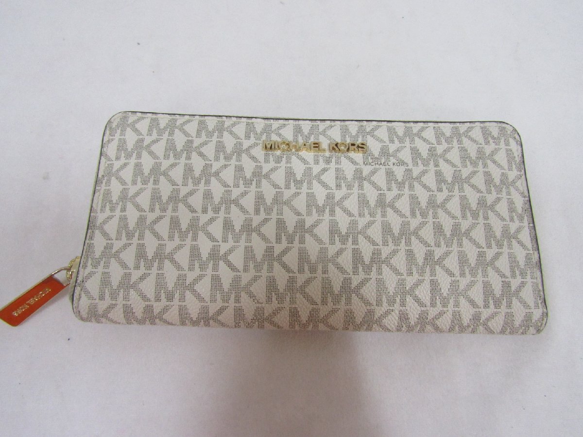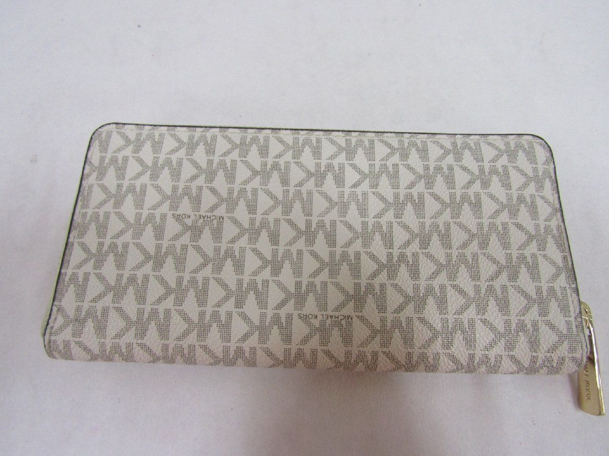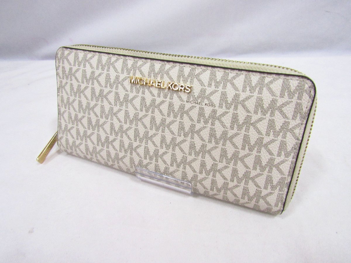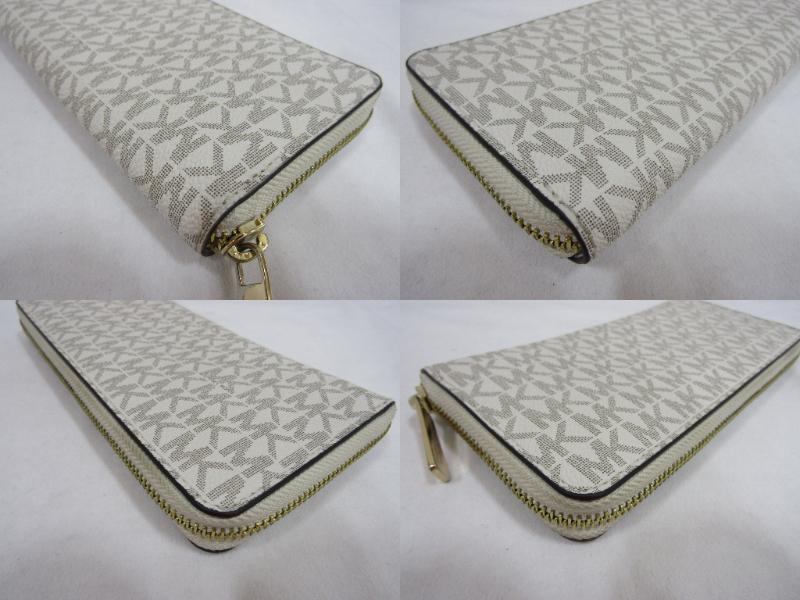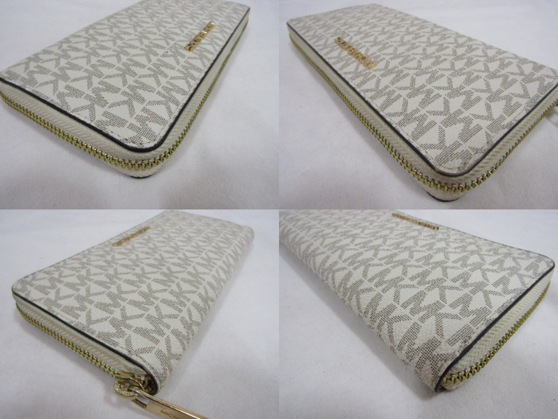 MICHAEL KORS マイケル・コース モノグラムラウンドファスナーロングウォレット ホワイト 中古品 ◆120342 | |||||||||