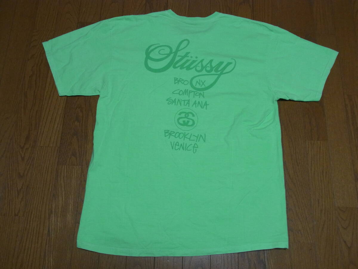 国内正規/STUSSY/ステューシー/ワールドツアー/Tシャツ/XL/ライトグリーン系