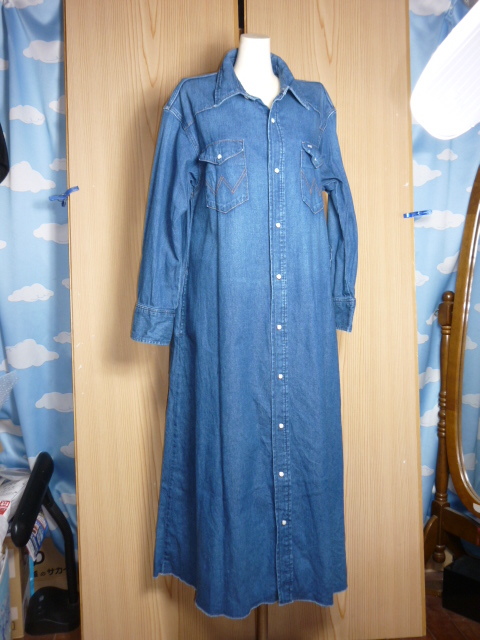 B'91★美品★Wrangler (ラングラー)・サイズ M【デニム地・ロングロング(125cm)・ワンピース】★商品詳細は記載文を・・