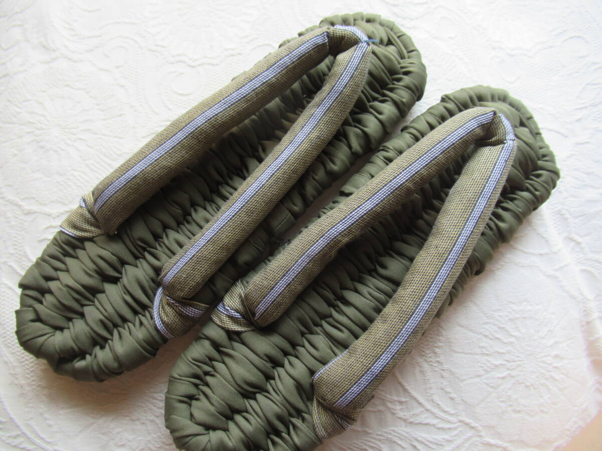 手作り 布草履 布ぞうり カーキ地 同系ストライプの鼻緒 27.5cm