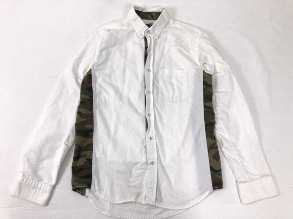 ビームス ハート BEAMS HEART セレショ系 サイド迷彩カモフラ切替 オックスフォード ボタンダウン 長袖シャツ メンズ 綿100% M 白 カーキ です。