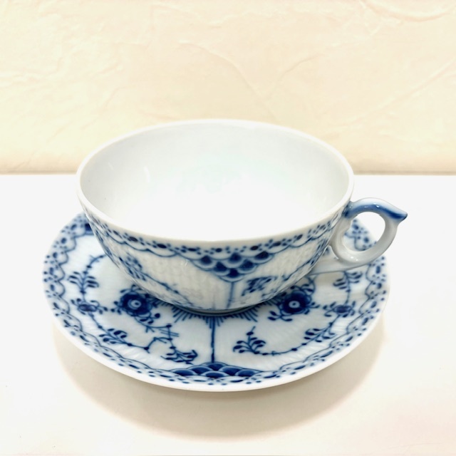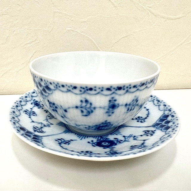 ・ロイヤルコペンハーゲン ブルーフルーテッド フルレース カップ&ソーサー