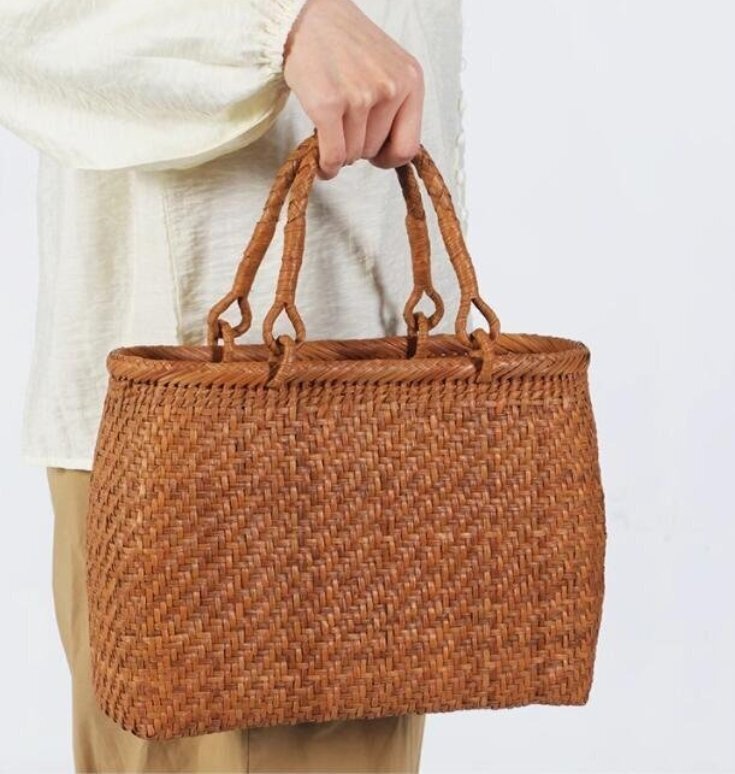 大容量★職人手作り良品 山葡萄かごバッグ 手編み山葡萄籠バッグ バスケット籐かご  高級UPハンドバック