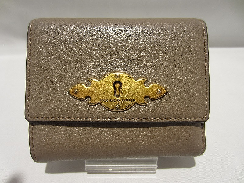 ポロラルフローレン POLO RALPH LAUREN レザー 3つ折財布 グレージュ