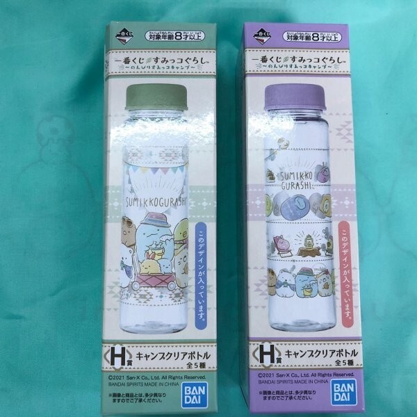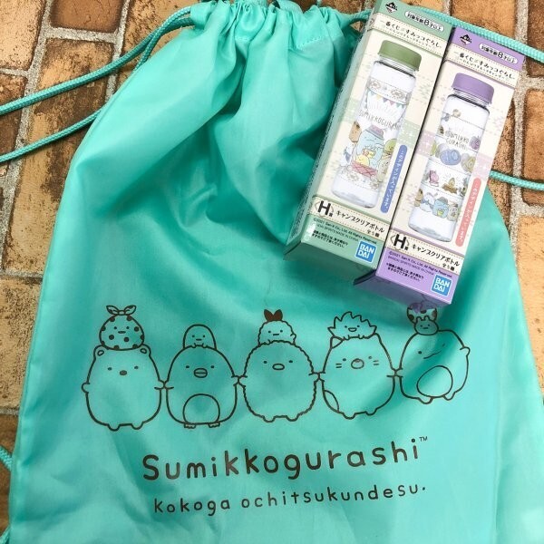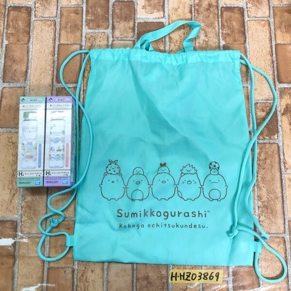 新品!すみっコぐらし 一番くじ キャンプクリアボトル2点・ナップサック 3点セット まとめ売り ミントグリーン他