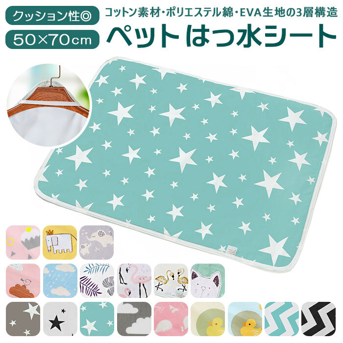商品説明 | ・ワンちゃんのお漏らしも、サッとひと拭きで安心!可愛い柄がたくさん選べる「ペット用はっ水シート」が新登場。 ・程よい厚みと柔らかなクッション性で、ワンちゃんやネコちゃんのくつろぎスペース用のマットに最適。 ・表面は肌触りのよいコットン素材、マット内側に水分を吸収するポリエステル綿を詰めたふんわり仕上げ!さらに、裏面は水滴をサッと弾くEVA生地の3層構造なので、ワンちゃんが急にお漏らしをしてしまっても大丈夫。 ・普段使用するペットシーツの下に敷いておくことで、仔犬のトイレトレーニングなどにも大活躍。 ・お食事中にフードを散らかしてしまいがちなネコちゃん用に、フードボウルや水のみ皿用のマットにしてもOK!飛び散り汚れを防いで、毎日のお掃除もラクラク。 ・ご家庭で手軽に手洗いができるから、いつも清潔に、繰り返し使えるのも嬉しいポイント! ・シートの裏側に、フックやハンガーなどに掛ける時に便利なループ付き。 |