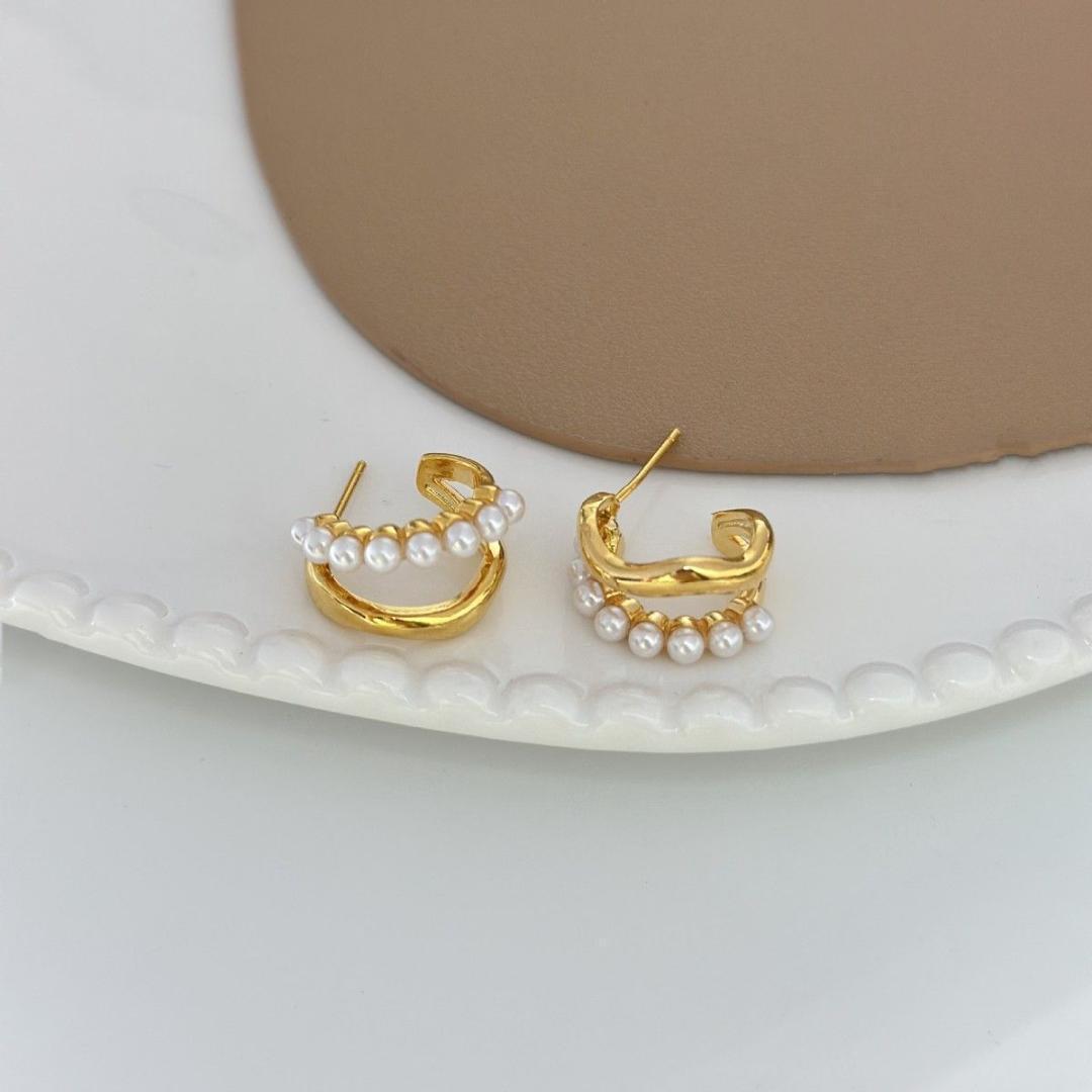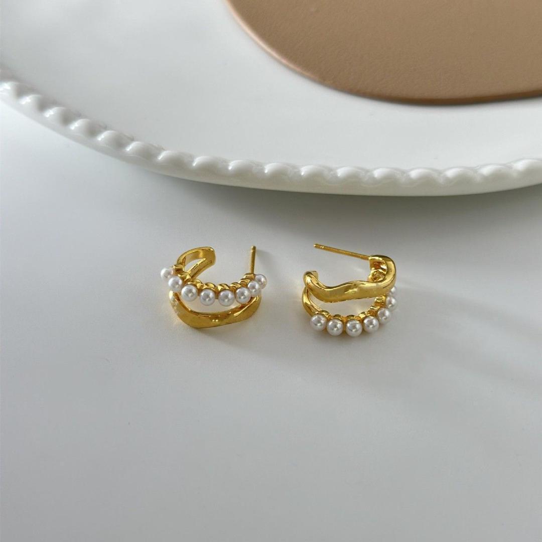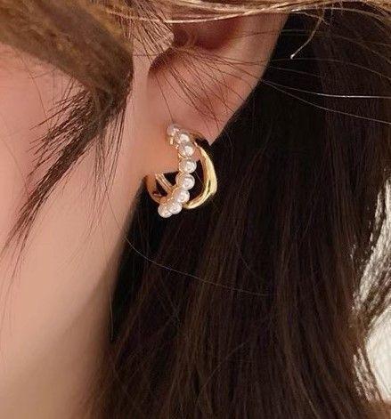 上品なパール風とフープデザインが、耳元を華やかに演出するピアスです。