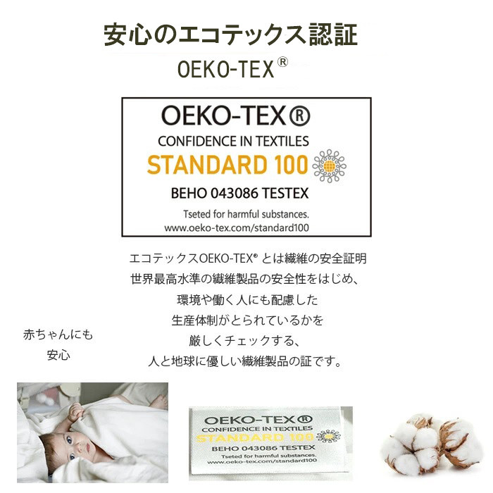 ■【エコテックス認証 OEKOーTEX】繊維の安全証明「エコテックス」 安全性や生産体制の環境、