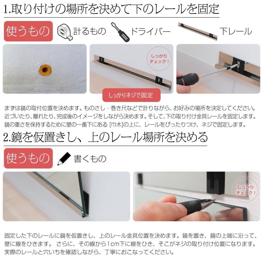 横掛けの鏡や縦掛け使用ミラーのどちらでも、浴室風呂鏡や洗面所化粧鏡、トイレの姿見、手洗い場用大きい鏡、寝室などさまざまなシーンに適応し、空間の質感を向上させます