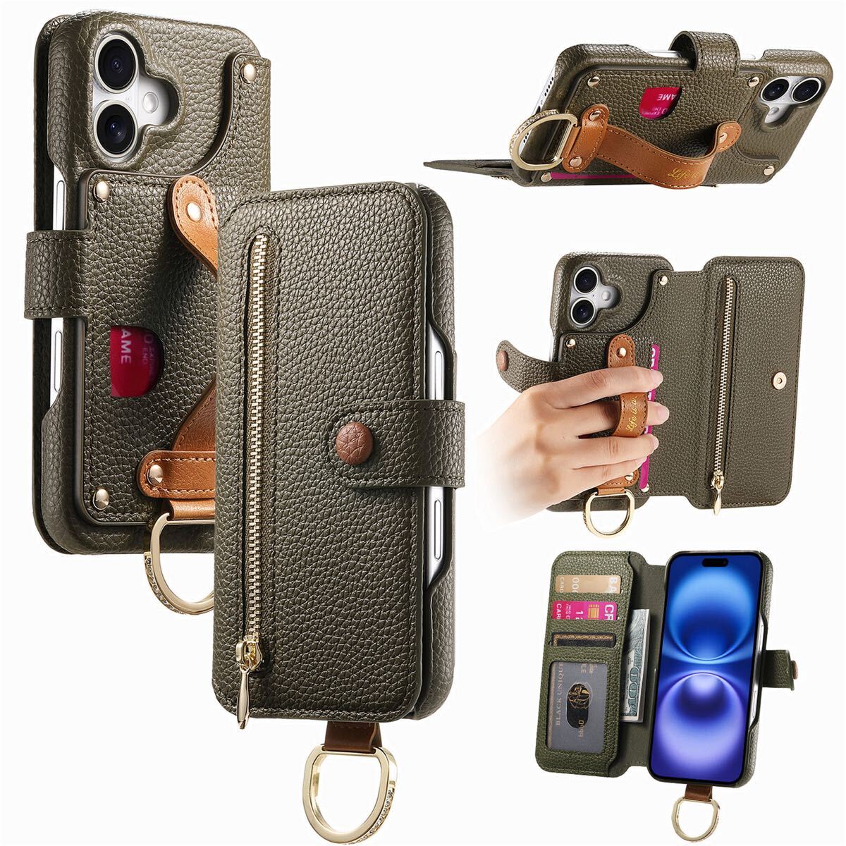 グリーン iphone16用ケース 手帳型 スマホケース 小物入れ 超繊皮 RFID磁気防止 スキミング防止 カードポケット 財布型 携帯カバー