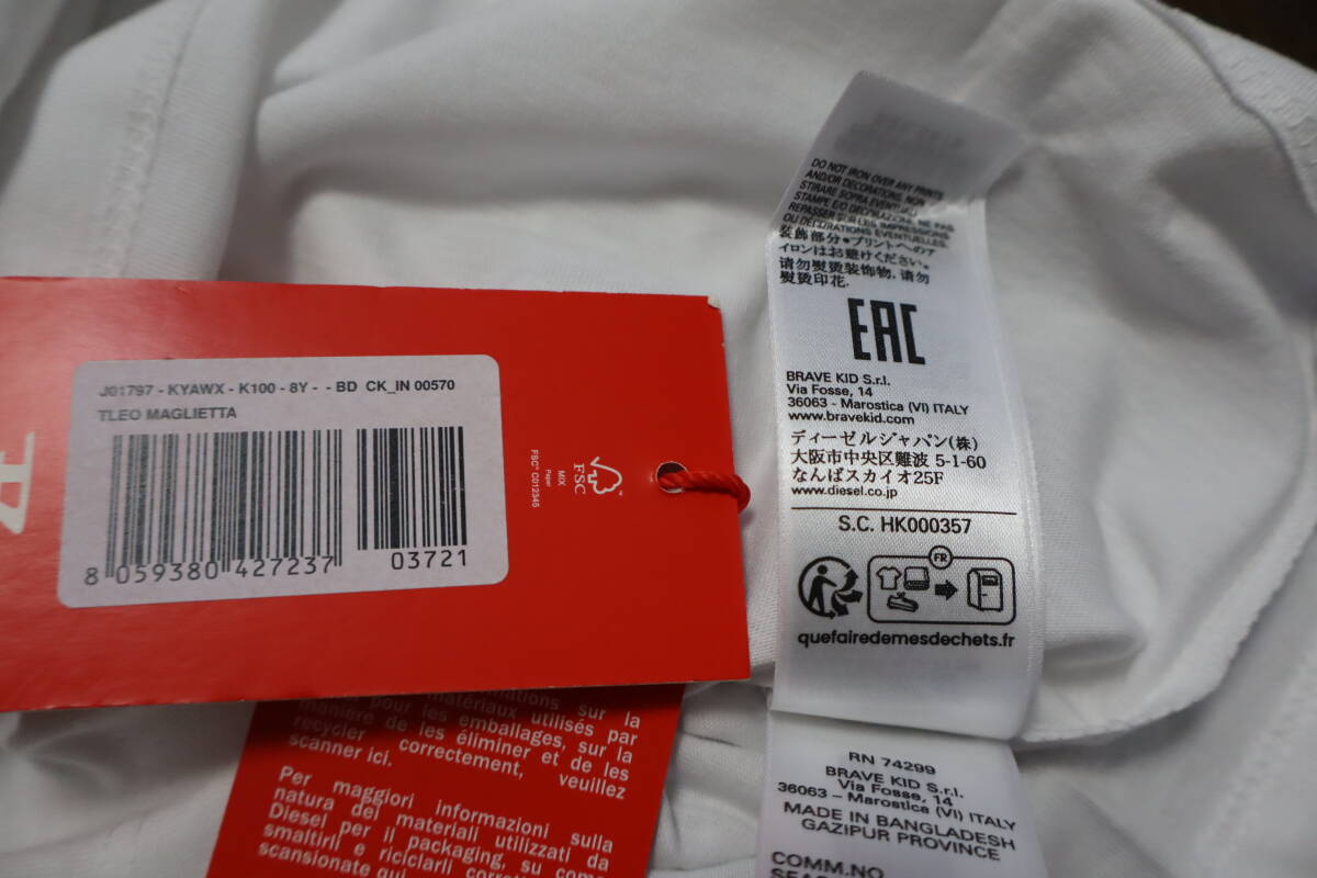 ☆DIESEL/ディーゼル☆未使用 Kids & Junior J01797 ブランドロゴTシャツ サイズ:8 Y 子供用 クルーネックTシャツ