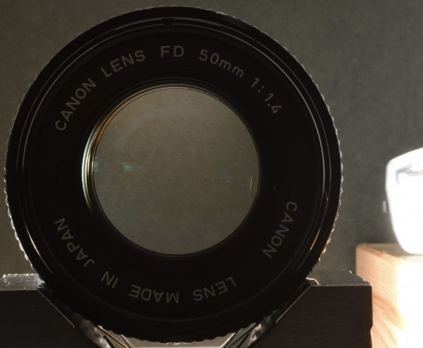 光学系:強烈なLED逆光ではオールドレンズにありがちな白い点が見られます。