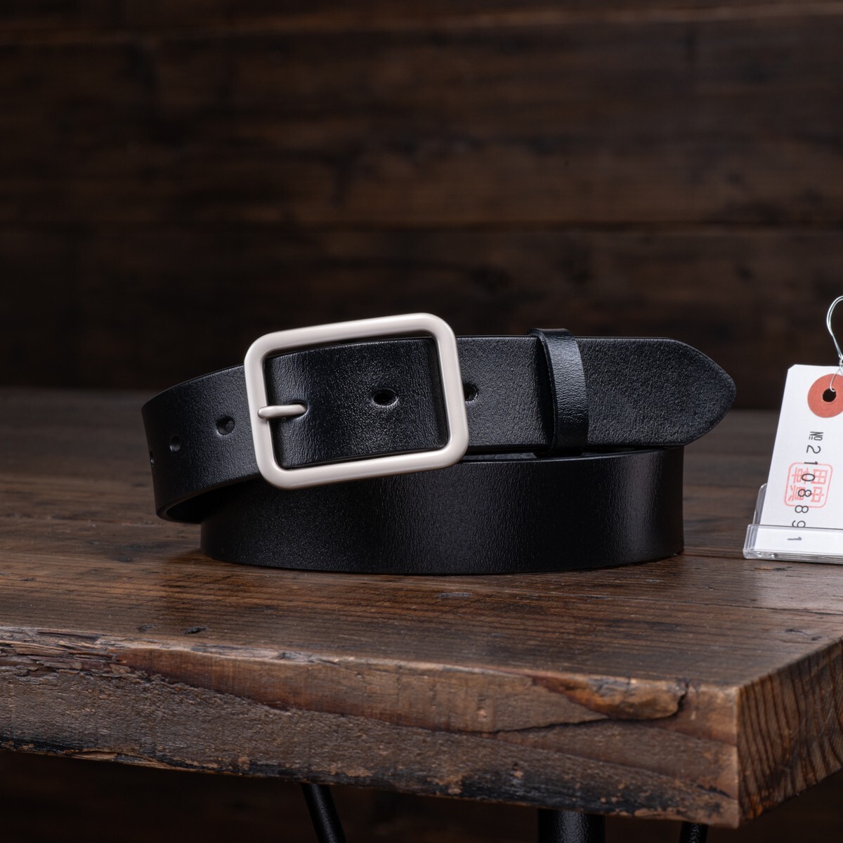 ブラック【牛革】イタリアンレザー シンプル メンズ 本革 ベルト フリーサイズ ナチュラル 新品 未使用 送料無料 1円 黒 田中革具