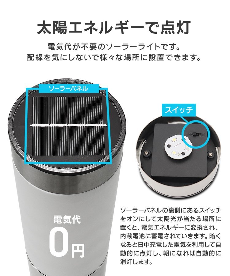 | 地面に埋め込むだけで設置でき、ソーラー発電で電気代不要!