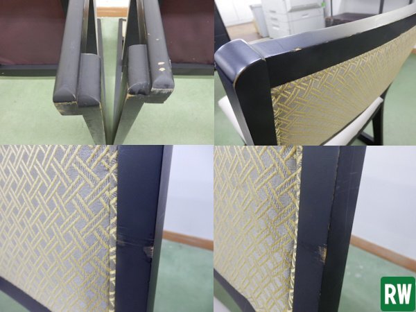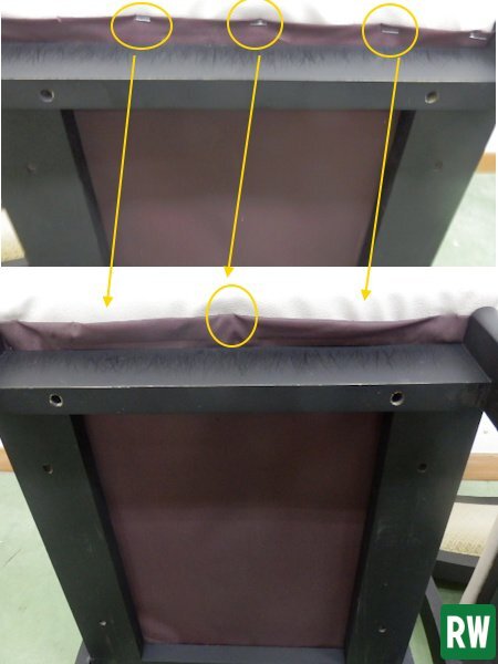 | 状態 | 中古品 座り心地は安定よくしっかりしていますが、傷、汚れ、シミ、黒ずみ、スレなどございます。 背もたれ部分の布地が1脚は少し破れ箇所があり、中の金具(タッカーの針?)が少し飛び出しています(画像6) タッカーの針の背の部分のようです。もたれてもあまりわかりませんが、指の腹で抑えるとわかります。 座面の裏側部分の布地をタッカーで止めていますが、1脚は何か所か外れています(画像9) | |||||||||