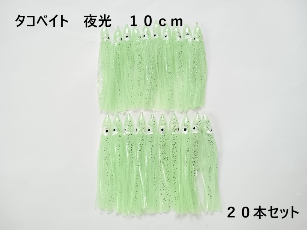 夜光 タコベイト 10cm 3g 20個 蓄光 グロー イカ スカート インチクに ソフトルアー ワーム 疑似餌 鮭 サーモン 根魚