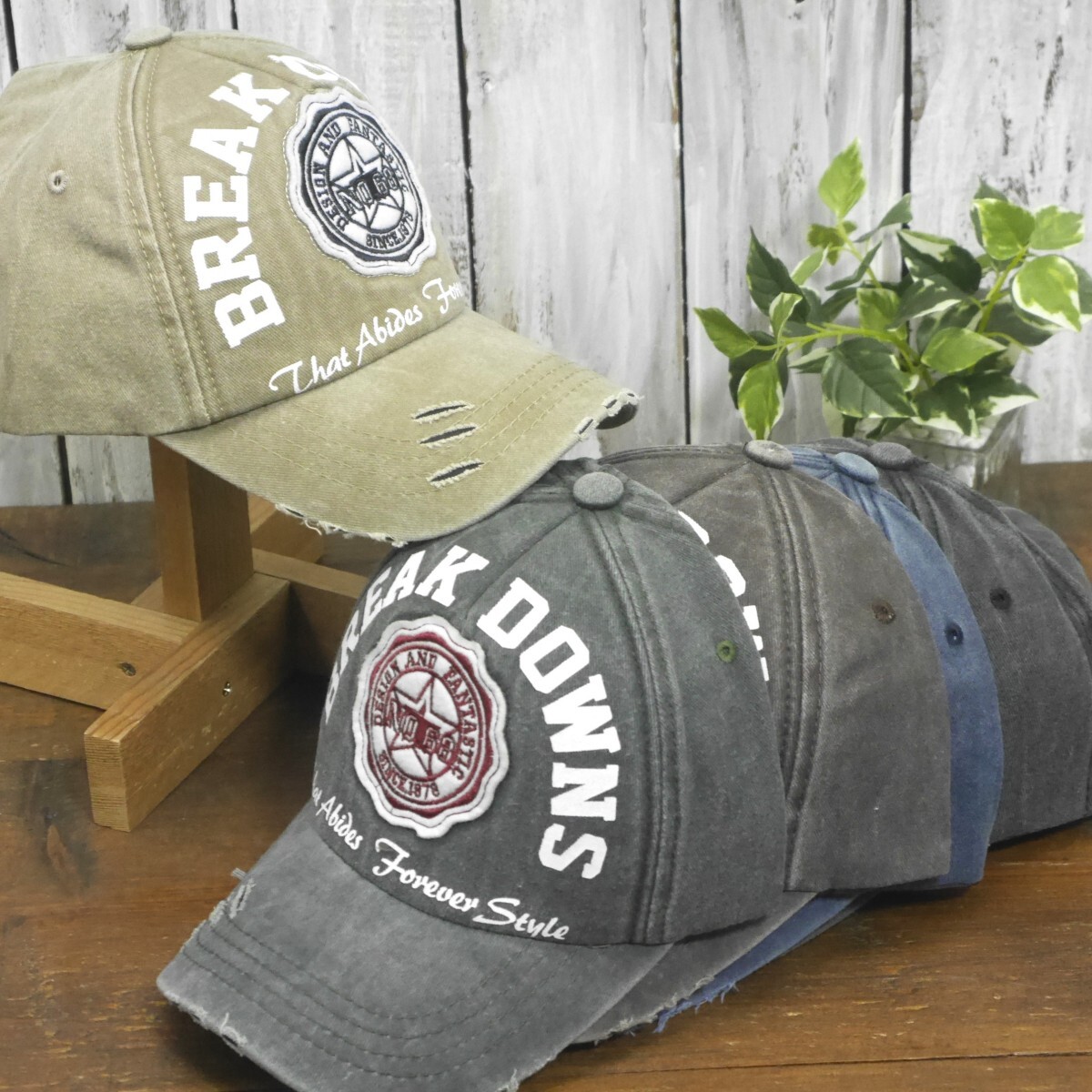 BREAK DOWNS ロゴキャップ ベージュ ロゴ 色あせ ビンテージ UV対策 サイズ調整可能 送料\450  男女兼用