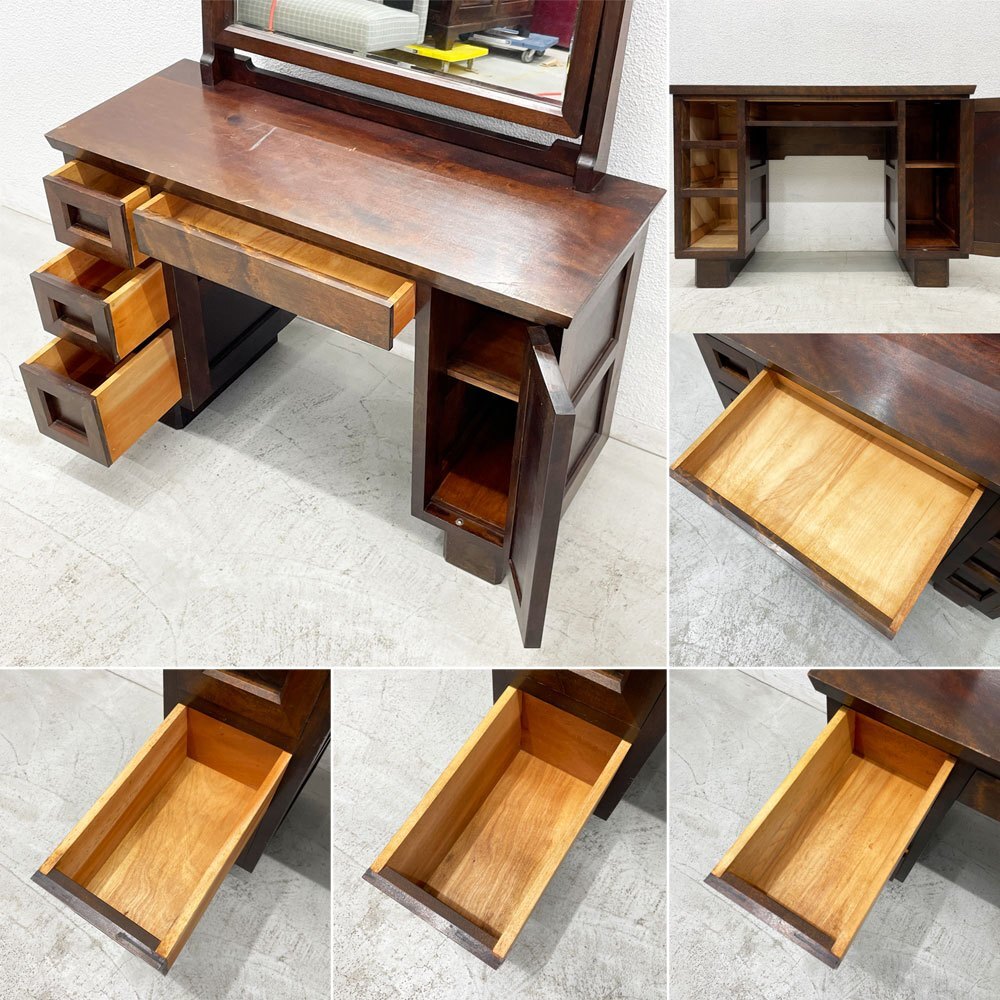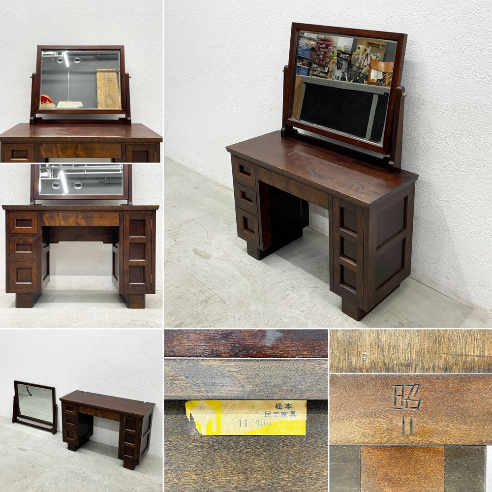 | コメント | 昭和19年創業の長野県・松本市の老舗家具メーカー“松本民芸家具”。美しく耐久性に優れているミズメザクラを主材とし、熟練の職人の手仕事で造られる最高級の民芸家具は、数多ある国内の民芸家具メーカーの中でもトップクラスの人気を誇ります。 こちらは、面取りの意匠が美しい「#309 一面鏡」です。 角度調節のできる大きなミラーに加えて、メイク道具やヘアアクセサリーなどの小物を仕舞える引き出しと、化粧水のボトルやヘアスプレイなどの長物を仕舞える扉収納を備え、収納スペースの容量も充分に確保されています。 虎の紋様のような杢目のミズメザクラと独特の深みを纏う同社ならではの塗料は、使うことでさらに美しく育ち、時の経過とともに味わいを増していく一生もののドレッサー。 畳の和室にはもちろん、和モダンスタイルのお部屋に是非いかがでしょうか。 ※当ショップは、主にリサイクル品を取り扱っております。基本的にUSED品である事をご理解頂き、ご入札をご検討下さいませ。 |