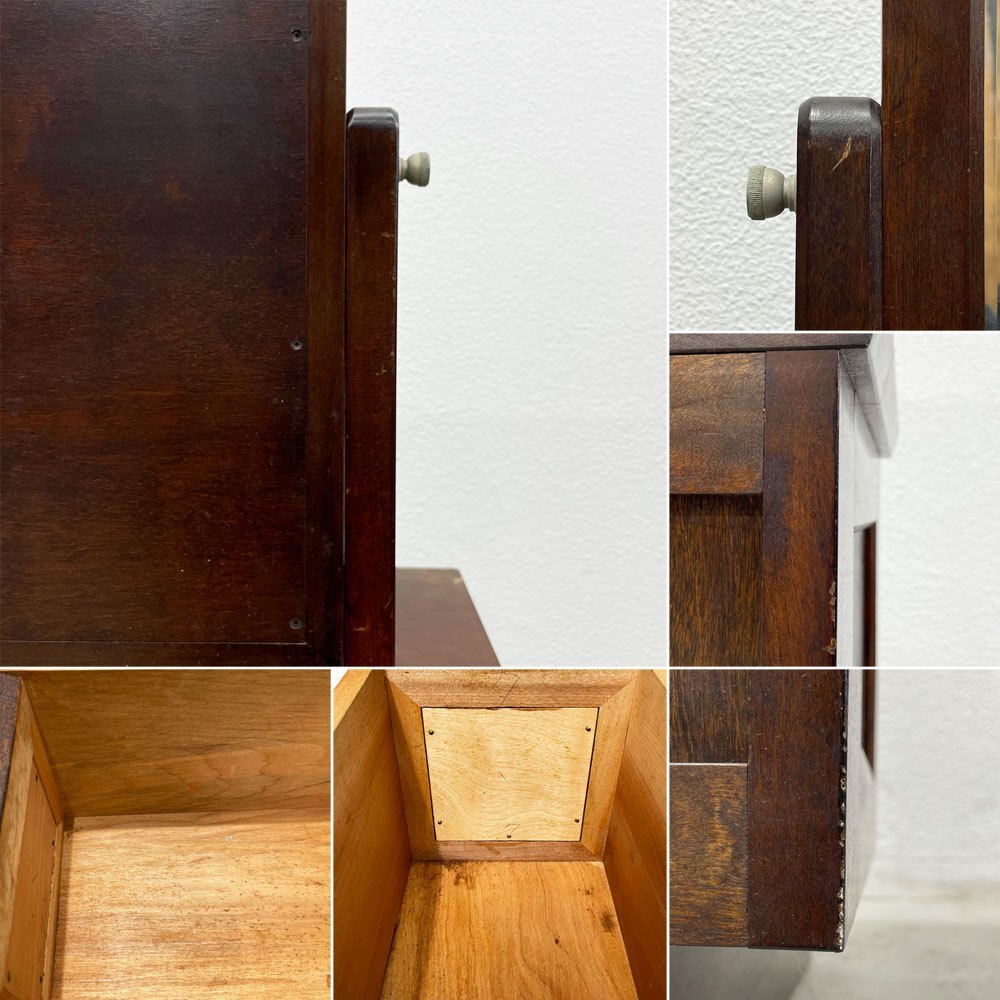| コンディション | 使用に伴い全体に擦れや小傷、汚れが見受けられます。また、抽斗内部に落とし切れない染み汚れや僅かなペイント痕がございます。やや使用感はございますが、ガタツキやグラつきといった使用の問題となるダメージはなく、これからもまだまだ実用頂けるコンディションを保っております。 使用感あり ※特筆すべきコンディションは出来るだけ記載させて頂きますが、細かい擦れや傷、汚れ等を完全にお伝えする事は出来ません。画像をご確認の上、ご入札をご検討下さいませ。 ※取扱説明書や保証書等は記載が無い限り付属いたしません。 |